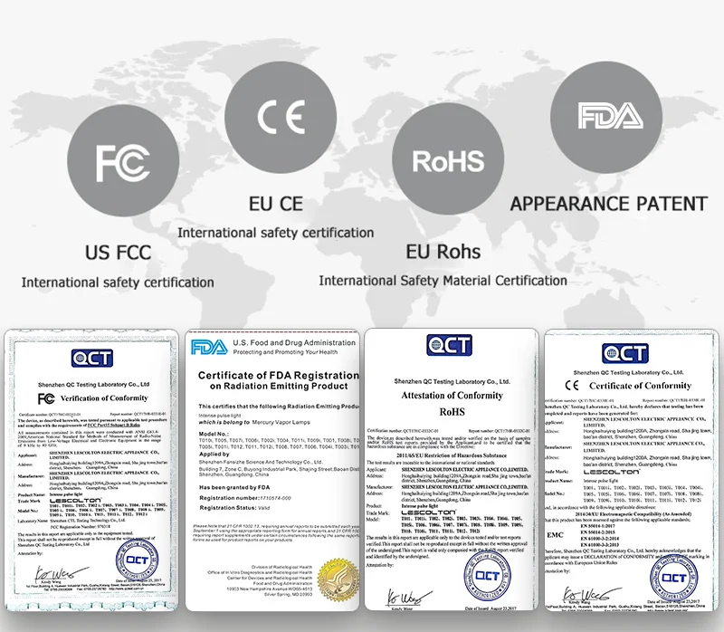 У нас есть ряд международных сертификатов безопасности, чтобы обеспечить удобный, полный и эффективный опыт удаления волос