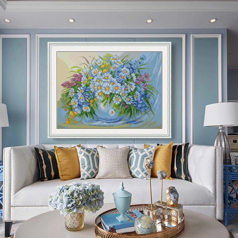 [Full DIY Fun] легкие наборы для вышивки крестиком с печатным рисунком на холсте подходят для детей и взрослых начинающих. Легко следовать инструкциям, точно напечатанный рисунок, а также арабские цифры, символы и цвета DMC делают эту перекрестную прошивку легкой и приносит много удовольствия нашей жизни.