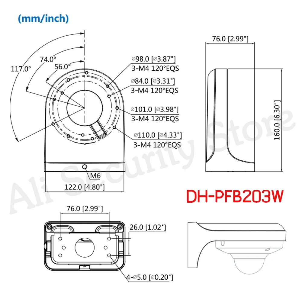 Dahua кронштейн PFB203W для DH IP камеры водонепроницаемый настенный кронштейн Костюм для IPC-HDW4431C-A купольная CCTV камера DH-PFB203W