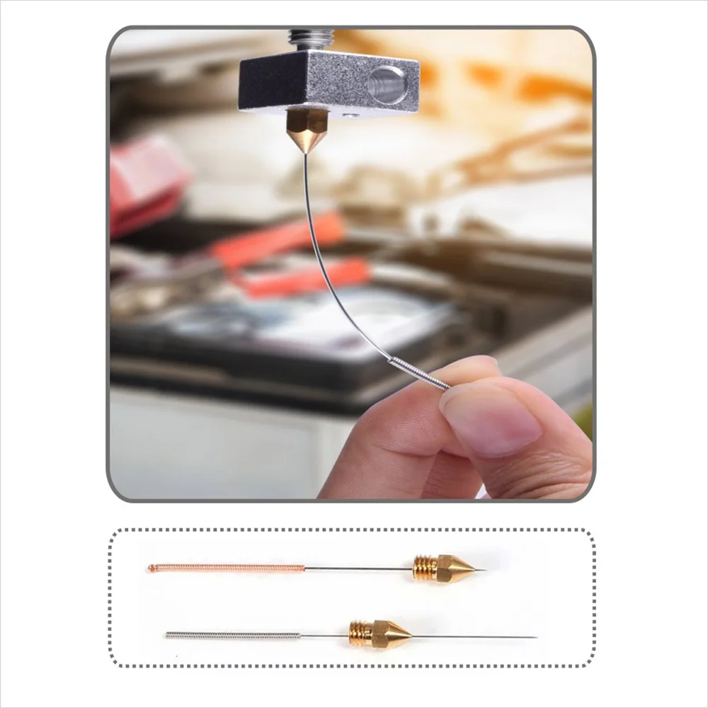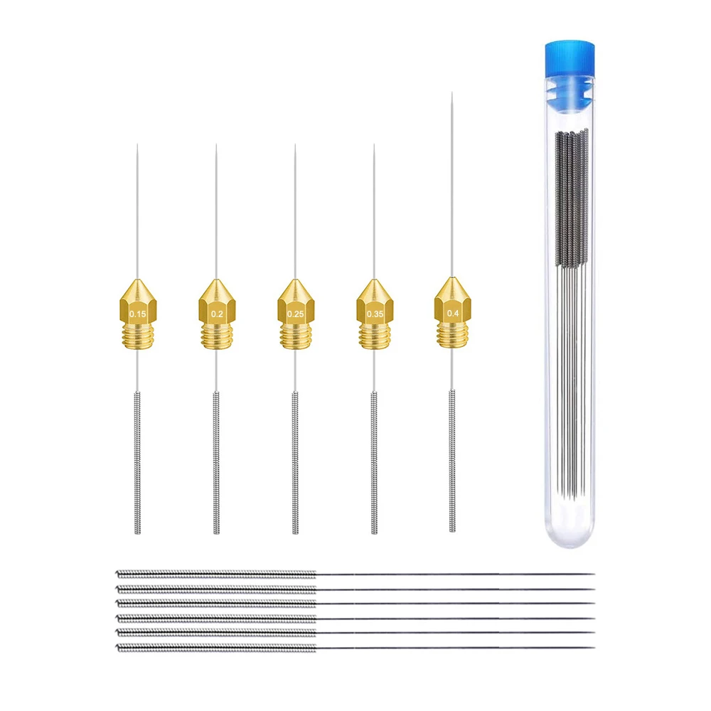 Fine sizes assorted - 0.15 mm, 0.2mm, 0.25mm, 0.35 mm and 0.4 mm cleaning needles not only suitable for most of sizes nozzle but also they can use for cleaning other small parts, such as throat and feeder gear