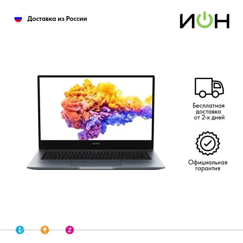 Легкий и компактный ноутбук Honor MagicBook станет вашим незаменимым помощником как в работе, так и в развлечениях. Он оснащен 4-ядерным процессором Intel Core i5 11-го поколения, который сможет быстро и эффективно решить любую задачу. IPS-дисплей с разрешением Full HD поразит вас высоким качеством изображения и естественной цветопередачей даже при ярком солнечном свете. Высокую скорость интернета обеспечит поддержка стандарта Wi-Fi 802.11ax. Встроенный SSD-накопитель позволит не только сохранить множество файлов, но и быстро загружать ОС Windows. Сканер отпечатков пальцев, встроенный в кнопку питания, сочетает удобство входа в систему и надежную защиту ваших данных. Большой аккумулятор на 7330 мАч обеспечивает до 10 часов автономной работы.
