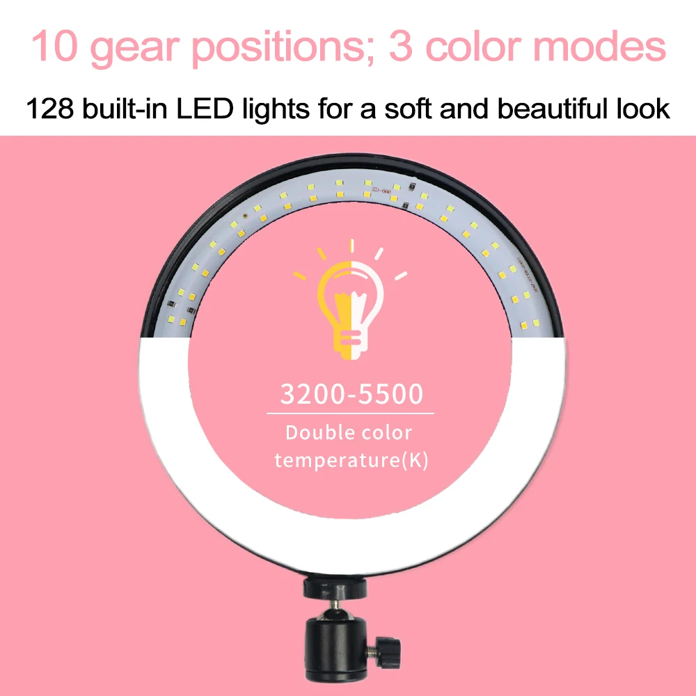 Большой 10in/26См Светодиодная кольцевая лампа для фотосъемки и нанесения Косметики128 светодиодов выделяют ваши видео в реальном времени, селфи и портретную съемку или дают вам дополнительный свет при нанесении макияжа.
