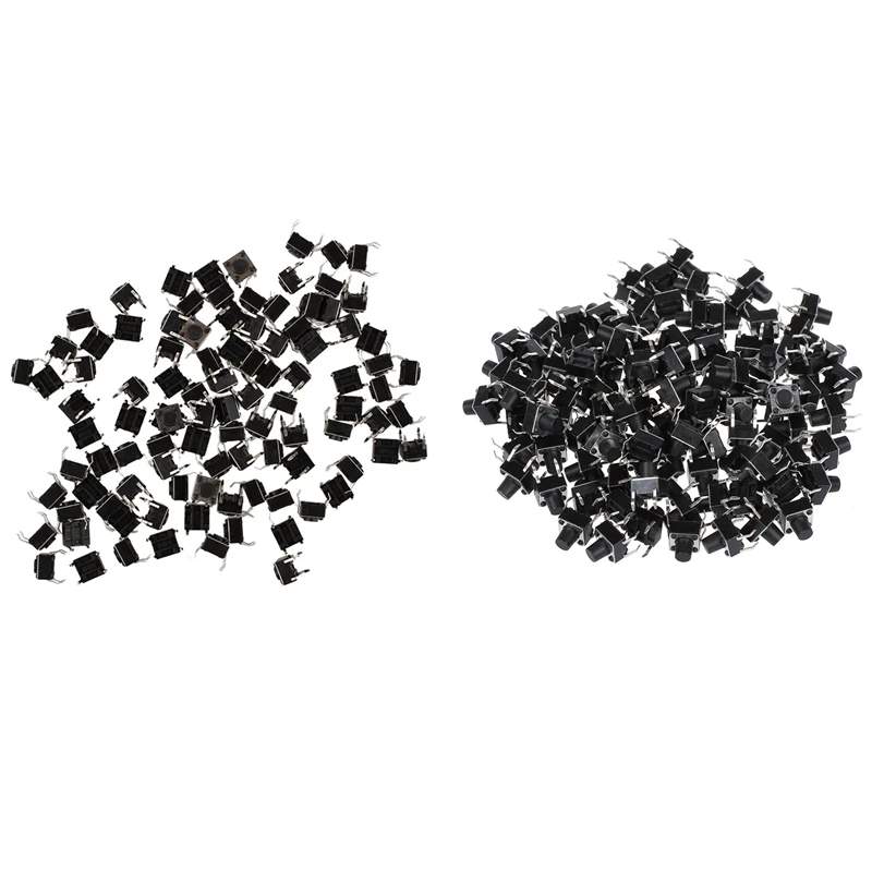 LBER 100 шт. 6x6x7мм мгновенный тактильный Такт кнопочный переключатель 4 Pin DIP сквозное отверстие и 100 шт. 6x6x4.5мм