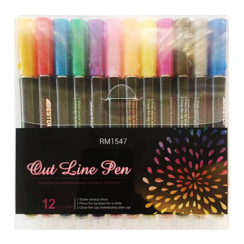 Контурная ручка с двумя линиями разработана со специальным износостойким и стойким к давлению наконечником из стекловолокна, который может легко и плавно писать. Чернила на водной основе химически устойчивы и устойчивы к воздействию на светильник. Наши чернила подходят для быстрой сушки и разглаживания.