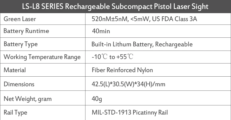 Лазерный прицел LS-L8 имеет 2 модели. Зеленый или красный лазер. Вы можете выбрать тот, который вам нравится.