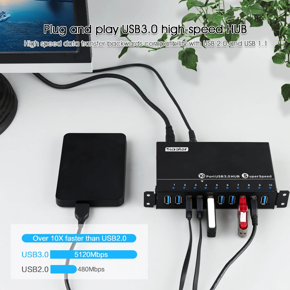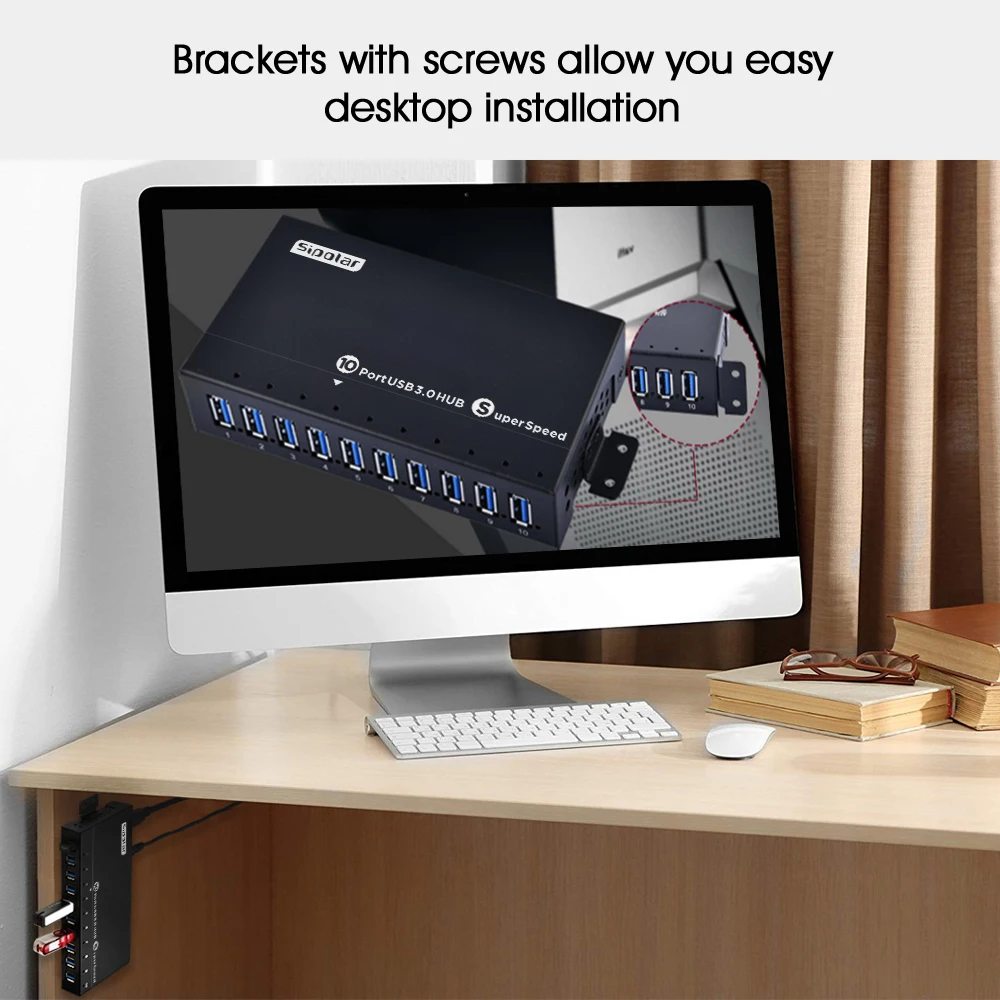 Мини-хаб 3.0 из алюминиевого сплава 4 в 1 USB-док-станция для Vista XP Windows 10/8/7 с адаптером питания.