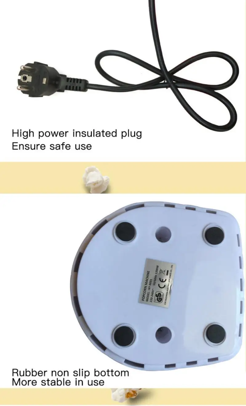 4. Установлено, что при использовании попкорна шнур питания поврежден, прекратите использование, вы должны связаться с профессиональным персоналом службы или ремонта.