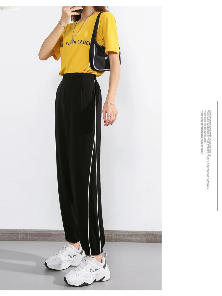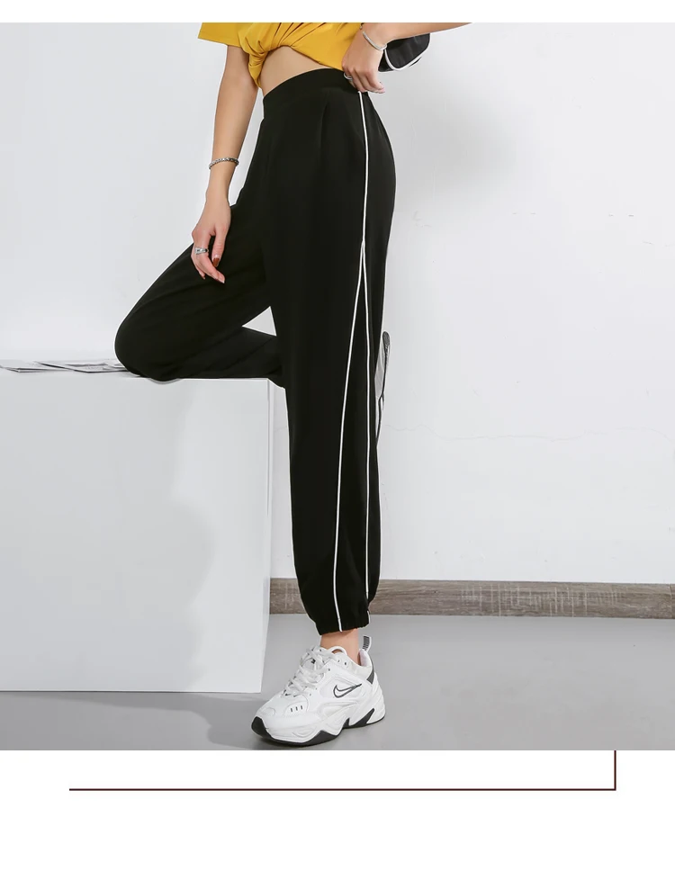 Последние дешевые женские повседневные спортивные брюки с полосками сбоку, обтягивающие женские спортивные штаны для бега размера плюс, свободные брюки на осень