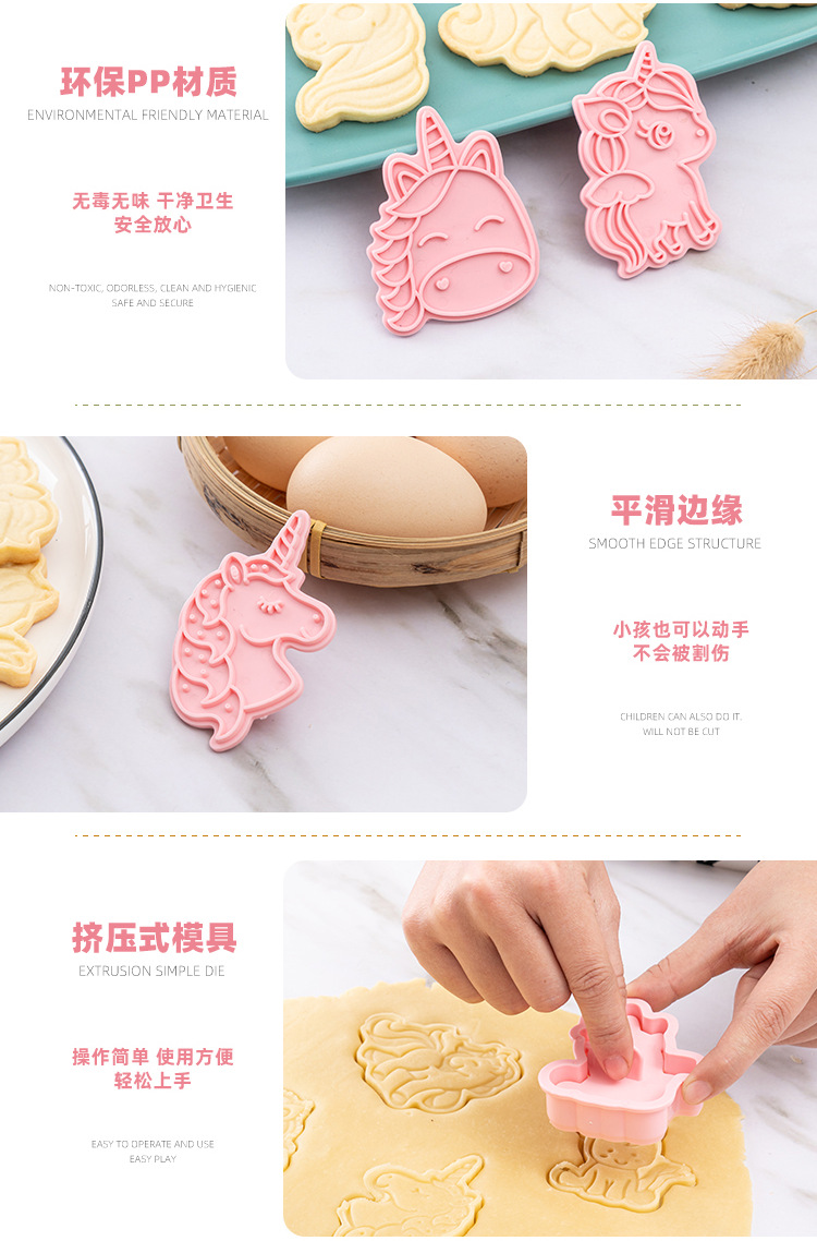6 шт./компл. 3D мультфильмы Единорог форма для выпечки для печенья резак прессформа Push Fondant форма для кухни форма для выпечки Торт Украшение Инструмент