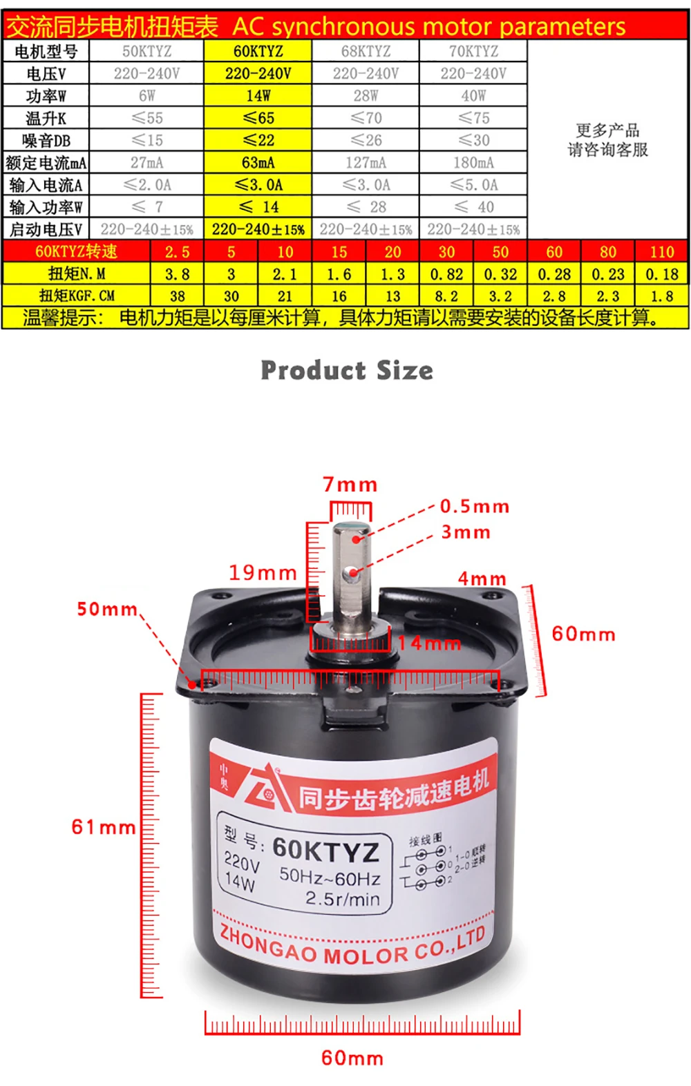 Размер двигателя: 60*61 мм
