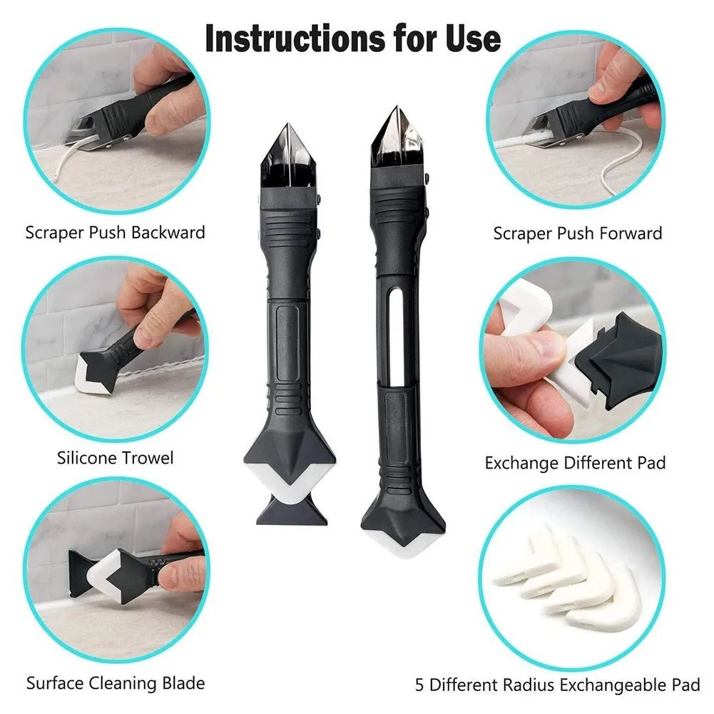 * Инструмент для удаления силиконовой формы включает в себя пластиковый скребок, металлический скребок для головки и несколько отделочных подушек для герметика.
