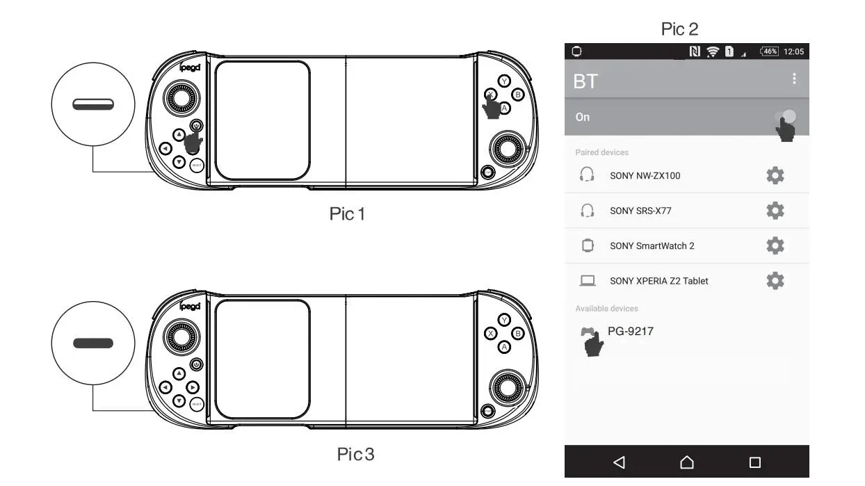 В это время индикатор LED2 быстро мигает, затем найдите «PG-9217» на Android