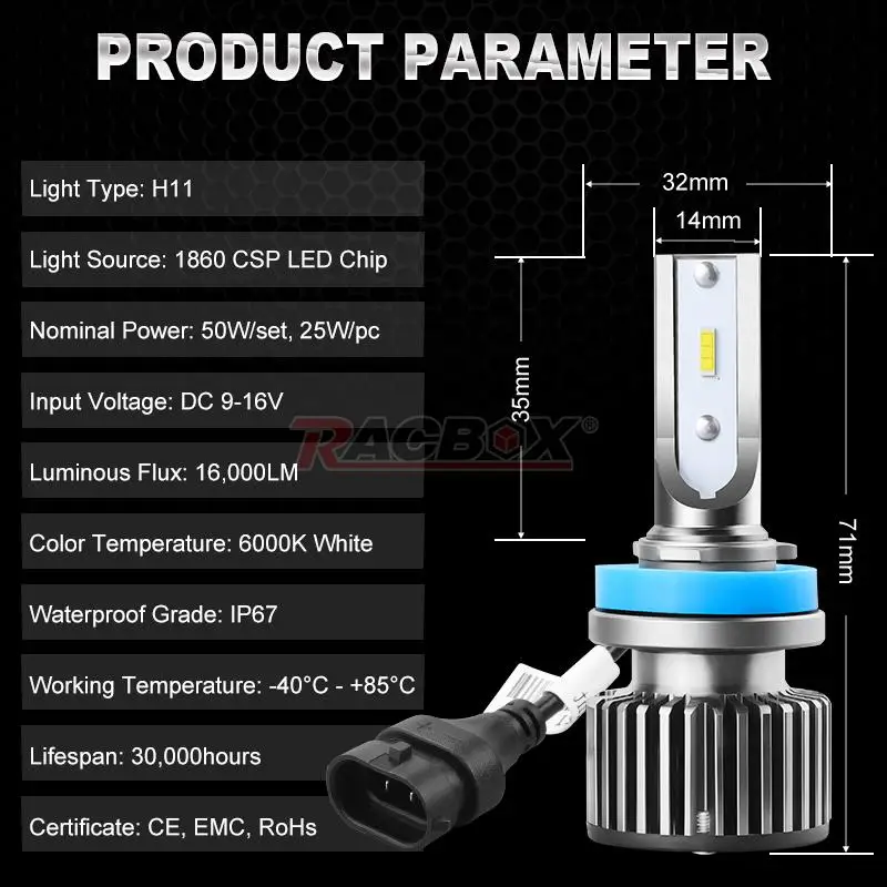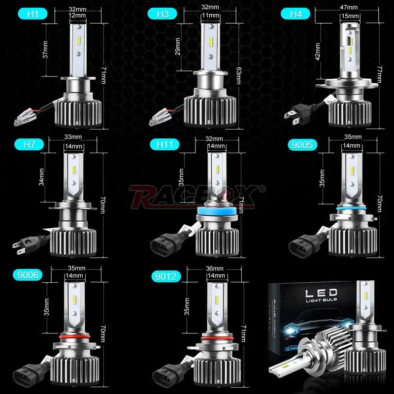 Тип разъема: H7 H4 H1 H11 H8 H9 H3 9005 HB3 9006 HB4 9012 HIR2