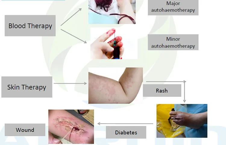 Latest patent design ozone generator for medical use, this ozone therapy machine is use 100% ozone resistant material, more professional design with vacuum pump for clinic and hospital treatment for skin and blood therapy with strict and precise concentration standard, this one can fulfill all kinds of ozone treatment due to its concentration range (1-120ug/ml), it can also available for personal use at home cause it is very easy to understand and operate .