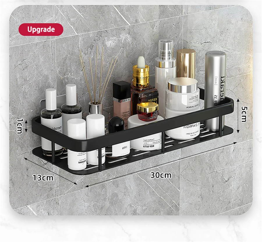 1. Made of high quality Aluminum material, bathroom racks, save bathroom space, drain design.