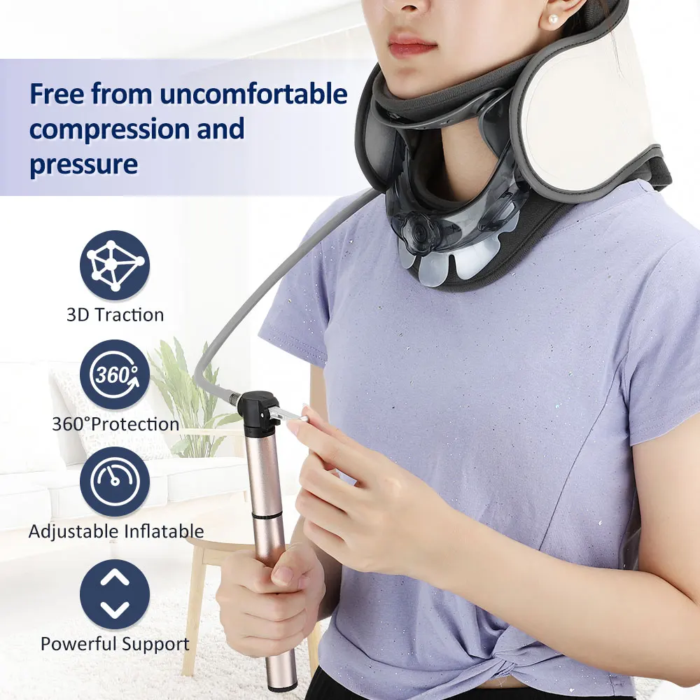 1. Регулируемое тяговое усилие можно контролировать, выпуская или добавляя давление надувного воздушного насоса, легко открыть Шейное межпозвонковое пространство и уменьшить трение шейки матки.