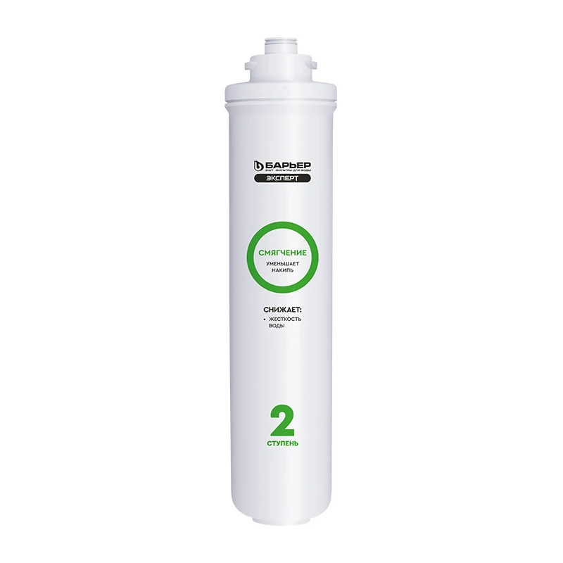 Compact replaceable filter cartridge for washing, designed to soften hard water. The filter element is installed at the second stage of cleaning three-stage filters "barrier expert rigidity" and "barrier expert complex".