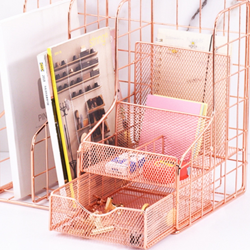 Многофункциональный держатель для журнала из розового золота, 6 различных отделений, держатель для документов, органайзер для файлов, держатель для книг
