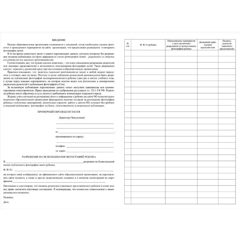 Журнал учёта согласий на размещение фото и информации о ребёнке на сайте ОО позволит руководителям образовательной организации фиксировать наличие согласия на размещение фотографий ребёнка с публичных мероприятий, что значительно упростит работу с сайтом ОО, поможет без проблем и опасений публиковать фотографии, не боясь ответственности за незаконную публикацию.