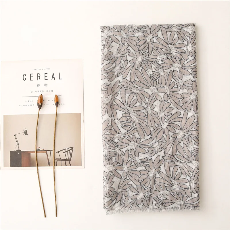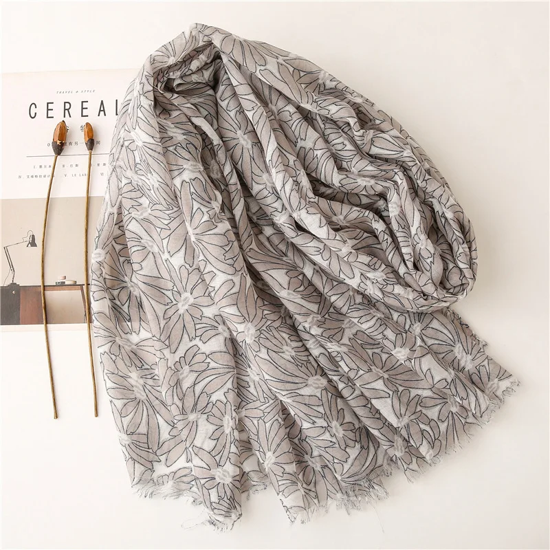 Модный женский роскошный вискозный шарф, светильник, серые ацтекские Цветочные шали с бахромой и обертывания, мусульманский хиджаб 180*90 см