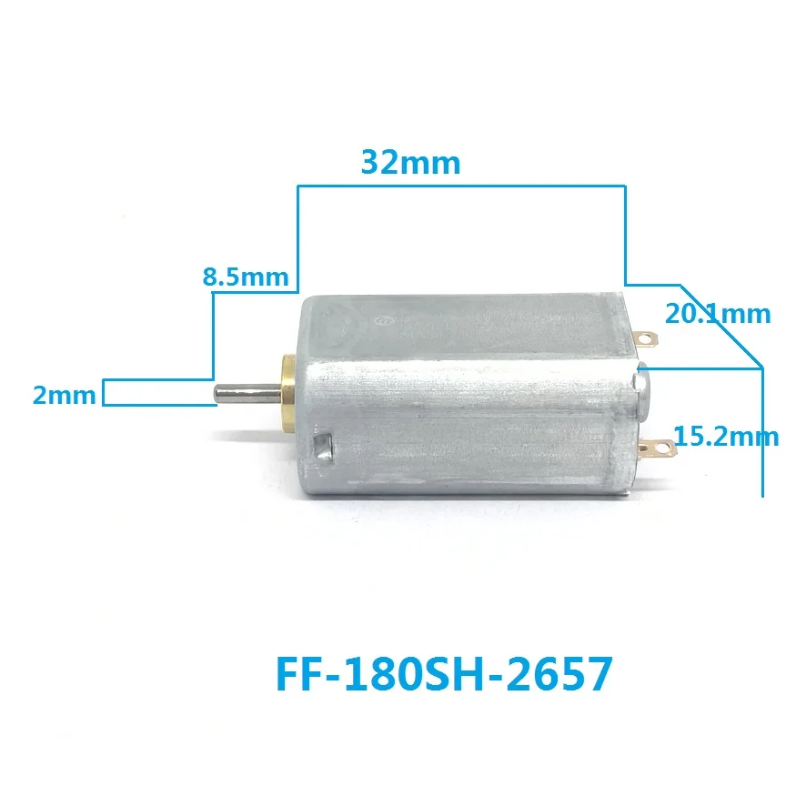 Выходной вал: 2,0 ммДлина выходного вала: 16,7 мм[Напряжение]: 3.0VDC-12VDCСкорость напряжения (без нагрузки) ток3,0 V 2000RPM 20 мА5,0 V 3500 об/мин 21 мА6,0 V 4200 об/мин, 22 мА7,4 В 5100 об/мин 23 мА9,0 в 6300 об/мин 26 мА12,0 в 8300 об/мин 35 мА