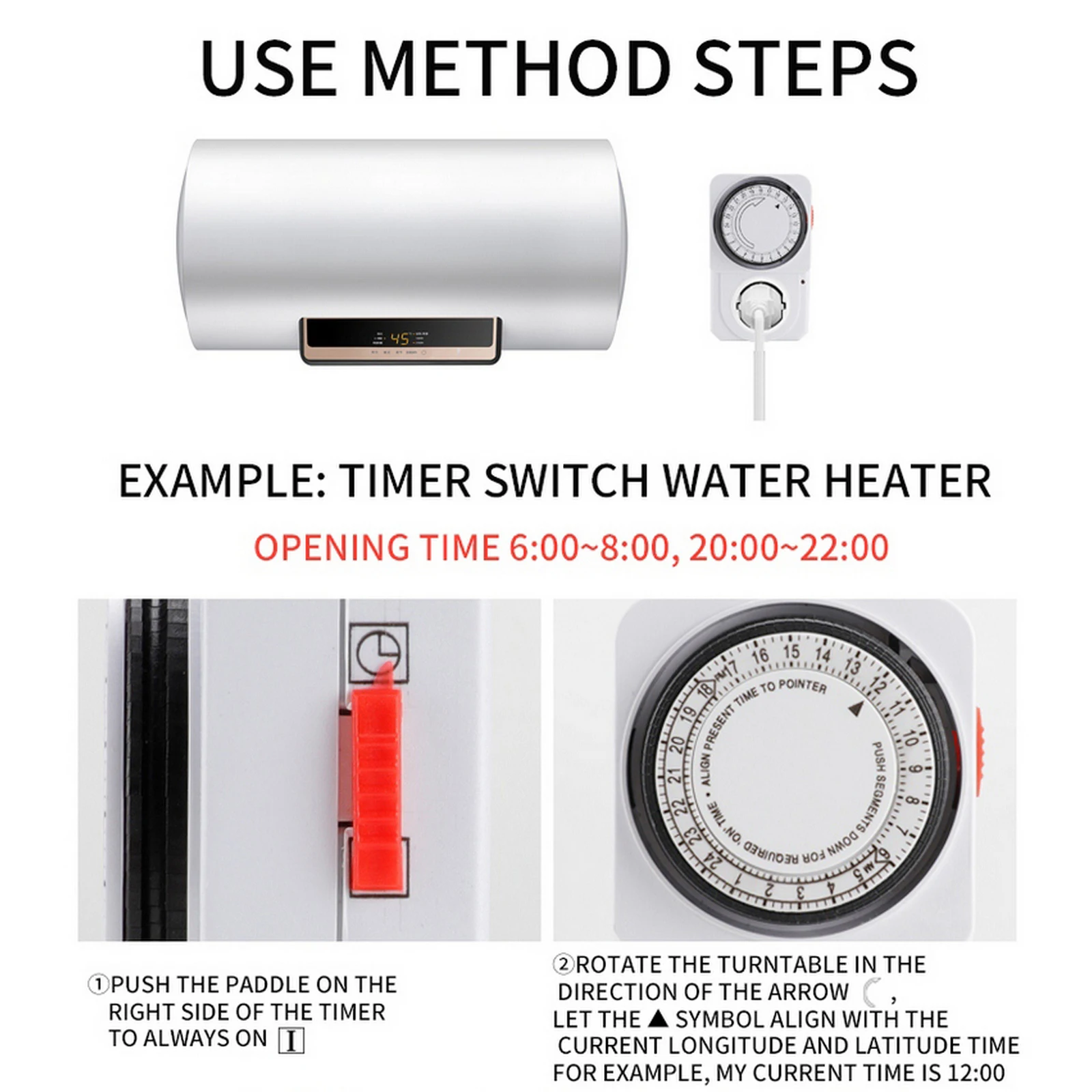 Used to control the time required to open and related appliances, such as: water dispenser, water heaters, air conditioners, rice cookers, advertising lightingDue to the difference between different monitors, the picture may not reflect the actual color of theitem. Thank you!
