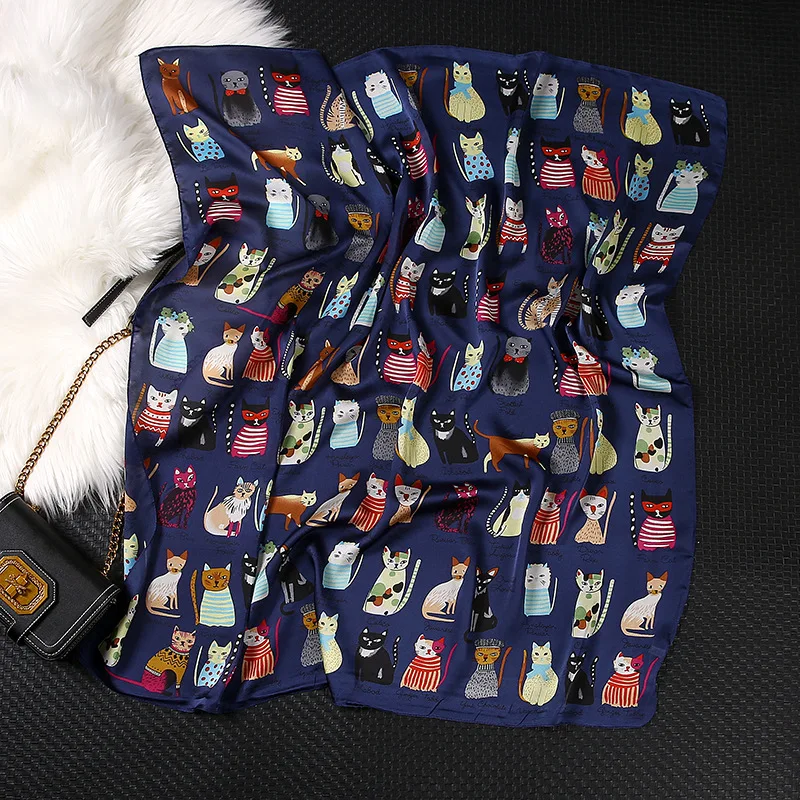 Kitten 90*90cm Square Silk scarf Women Foulard Head Scarf Ladies Shawl Wrap Muffler Pareo Bandanna Female Hijab Poncho beach