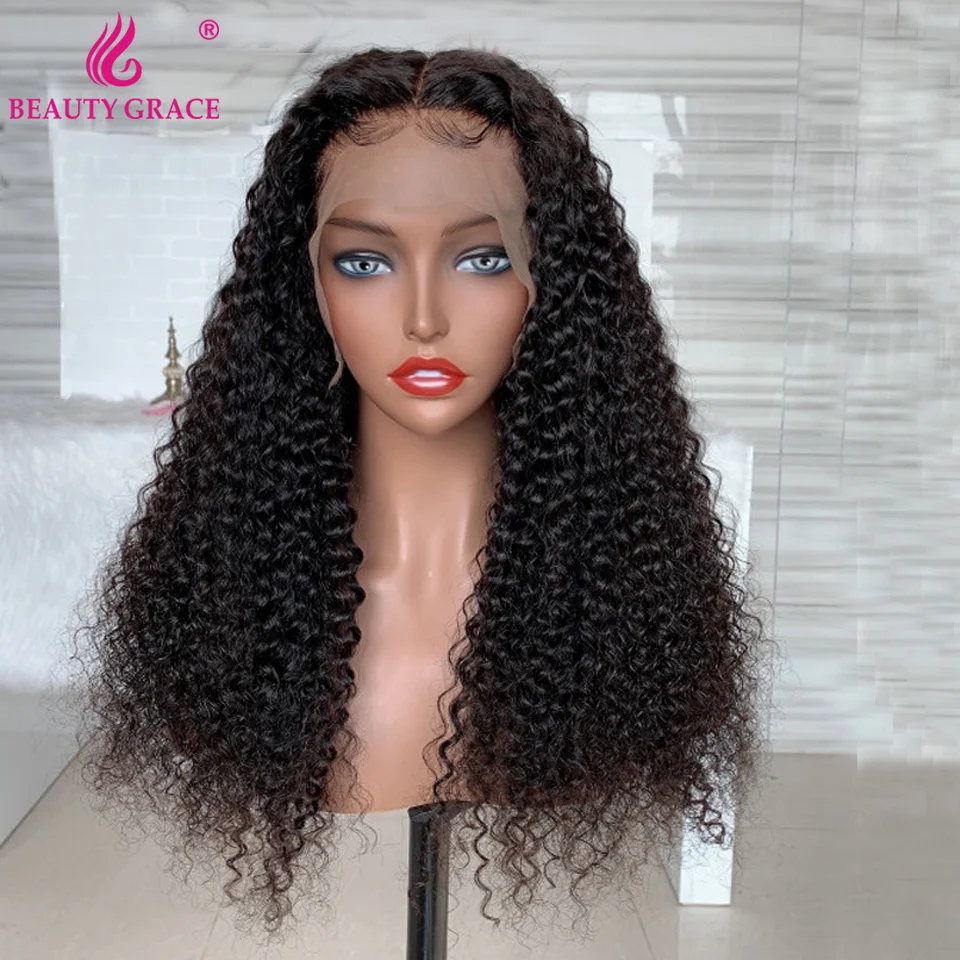 Красота Грация 30 дюймов кудрявые кружевные передние человеческие волосы парики для женщин T часть глубокий кудрявый кружевной передний al парик бразильские волосы парик шнурка
