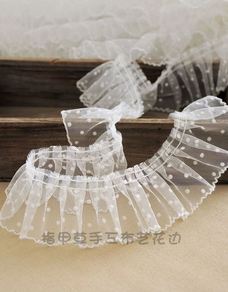 6 см Широкий красочный горошек Чистая Пряжа рюшами Кружева Плиссированные ткани сетка вышитые ленты платье шторы ручной работы швейный материал