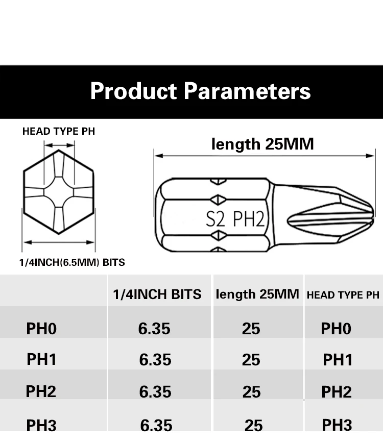 1 дюйм PH0 PH1 PH2 PH3 крестообразная отвертка бит S2 Сталь 1/4 дюймов 6,35 мм шестигранный хвостовик Электрический насадки для отвертки для Мощность инструменты