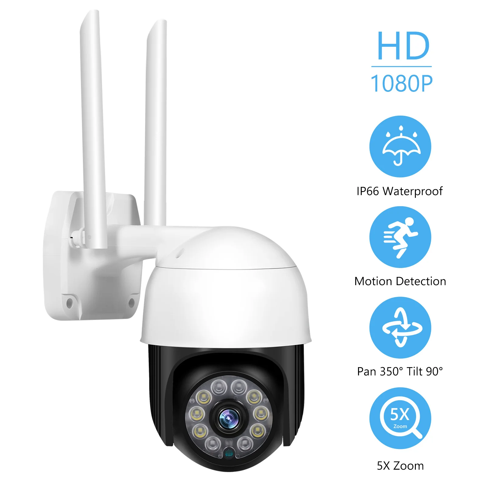 2MP PTZ камера безопасности на открытом воздухе 1080P беспроводная WiFi камера наблюдения камера Поддержка ночного видения, обнаружение движения, двухстороннее аудио