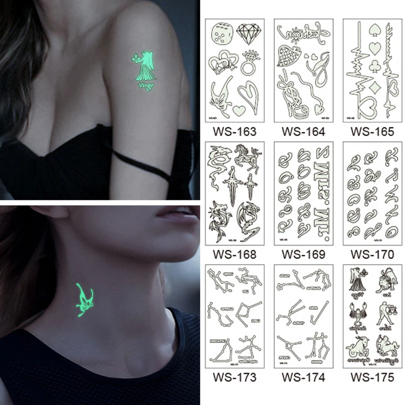 1 лист переводная вода светящаяся наклейка татуировки