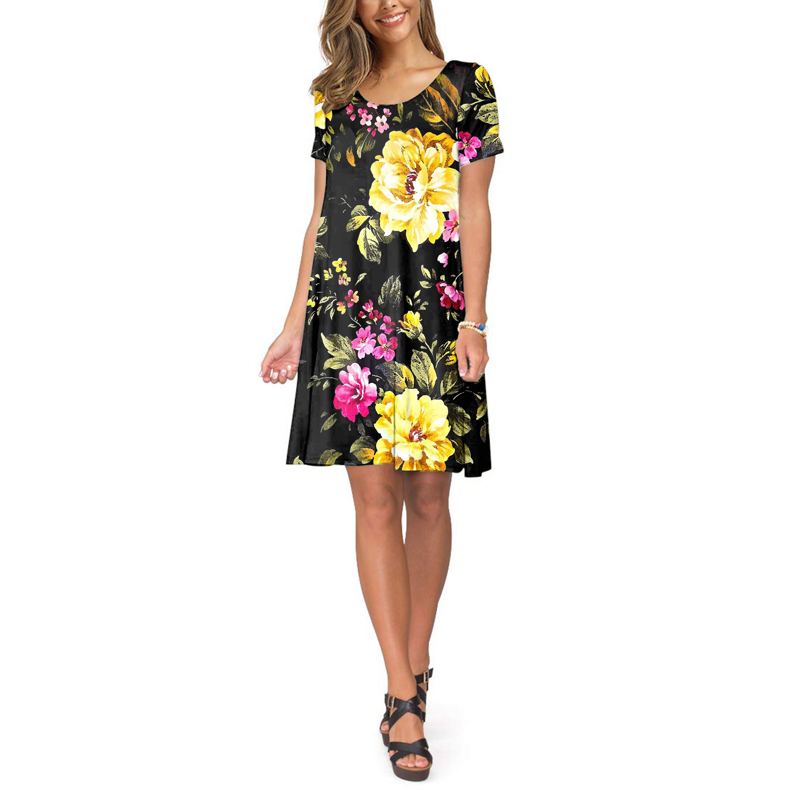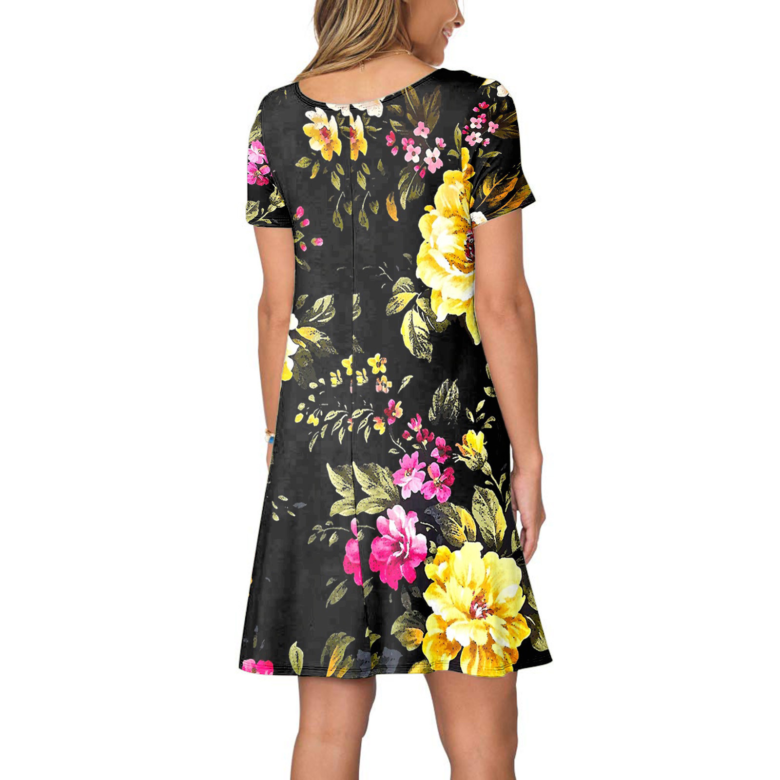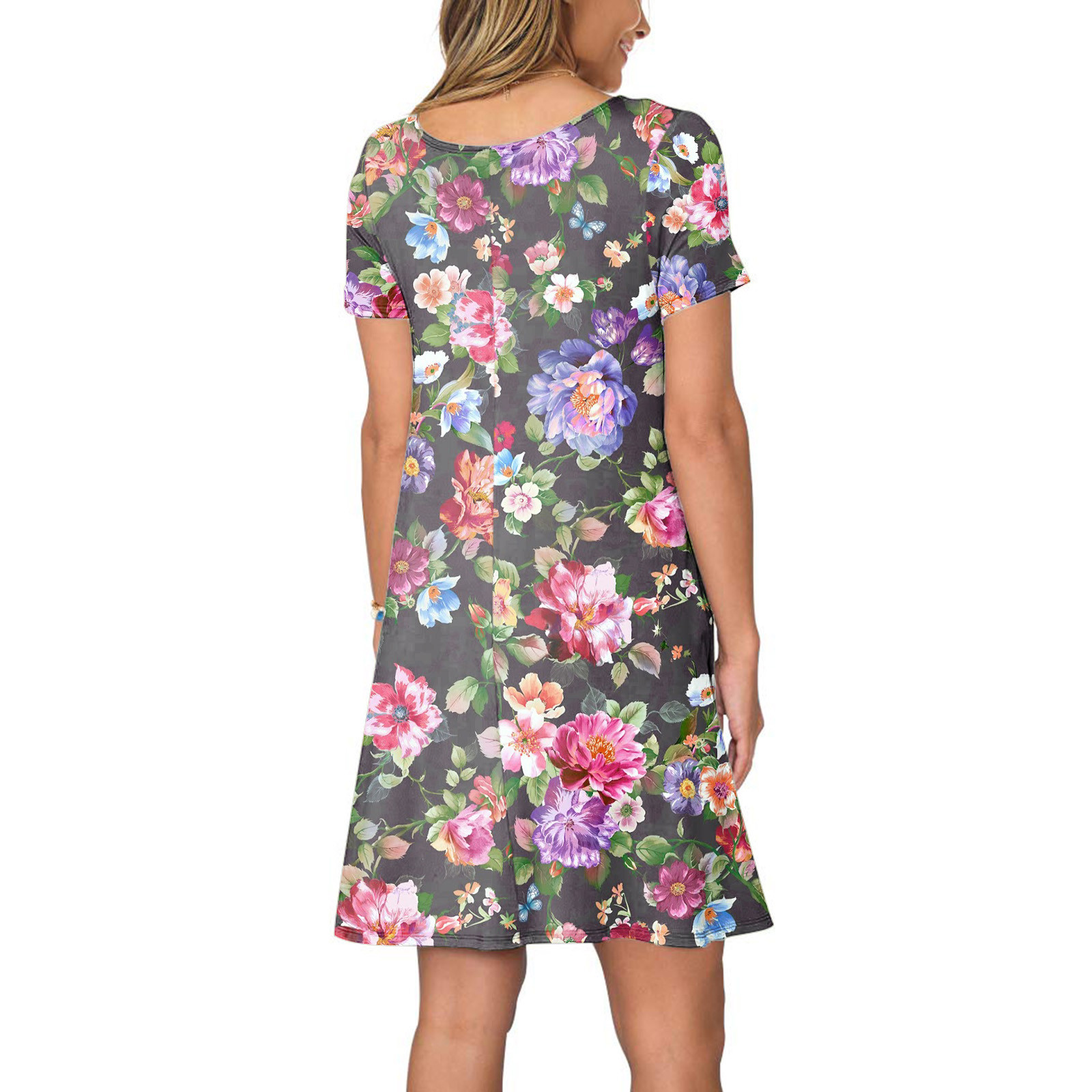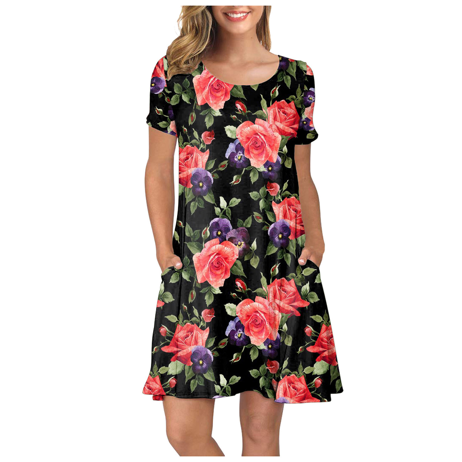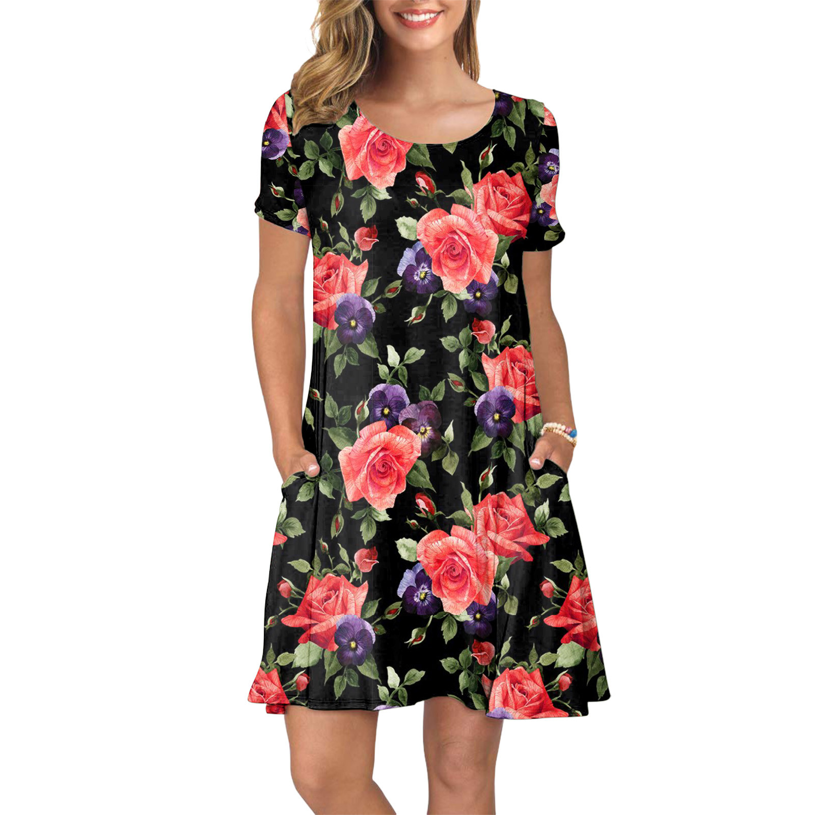 Женское летнее платье с коротким рукавом, цветочным принтом и карманами, повседневное свободное платье