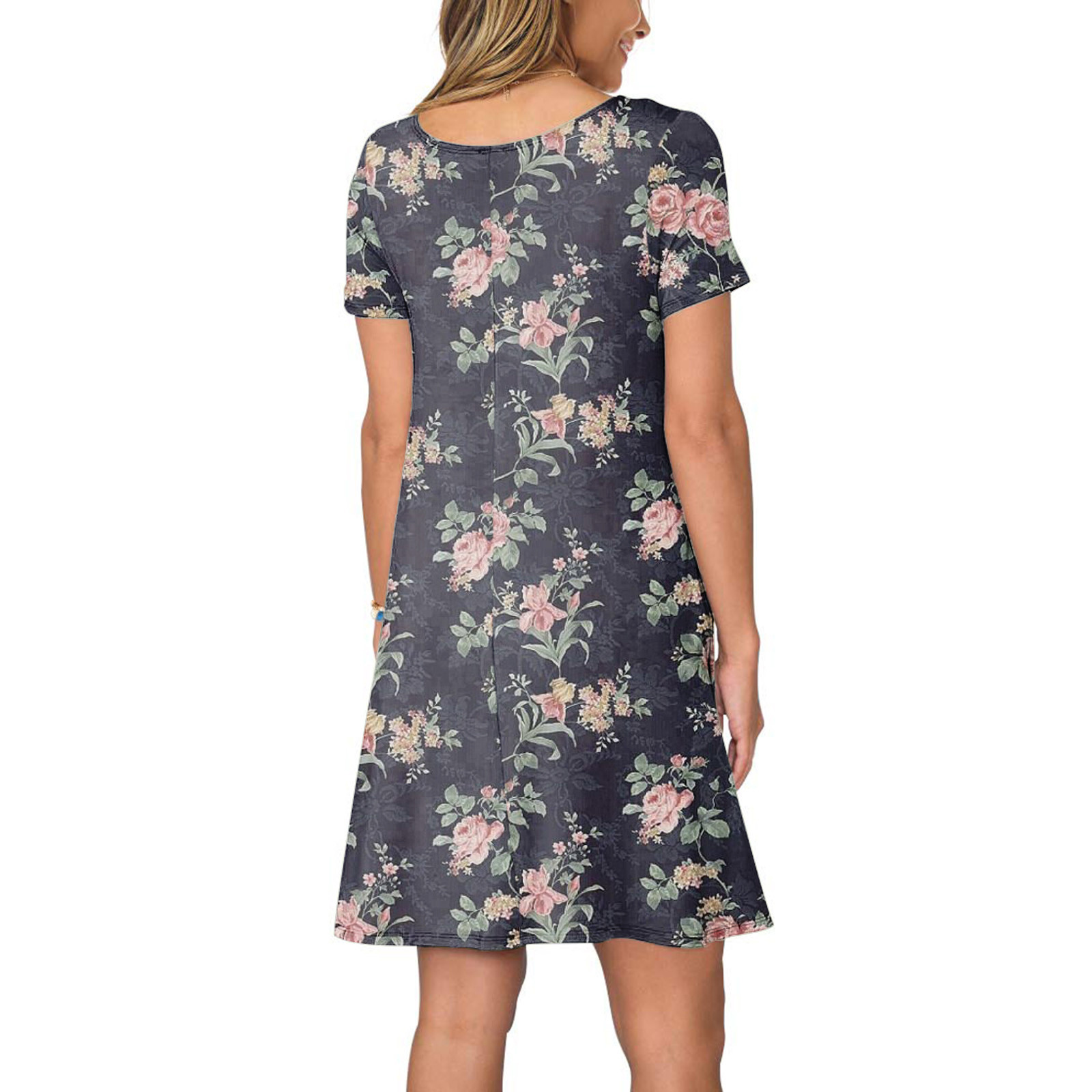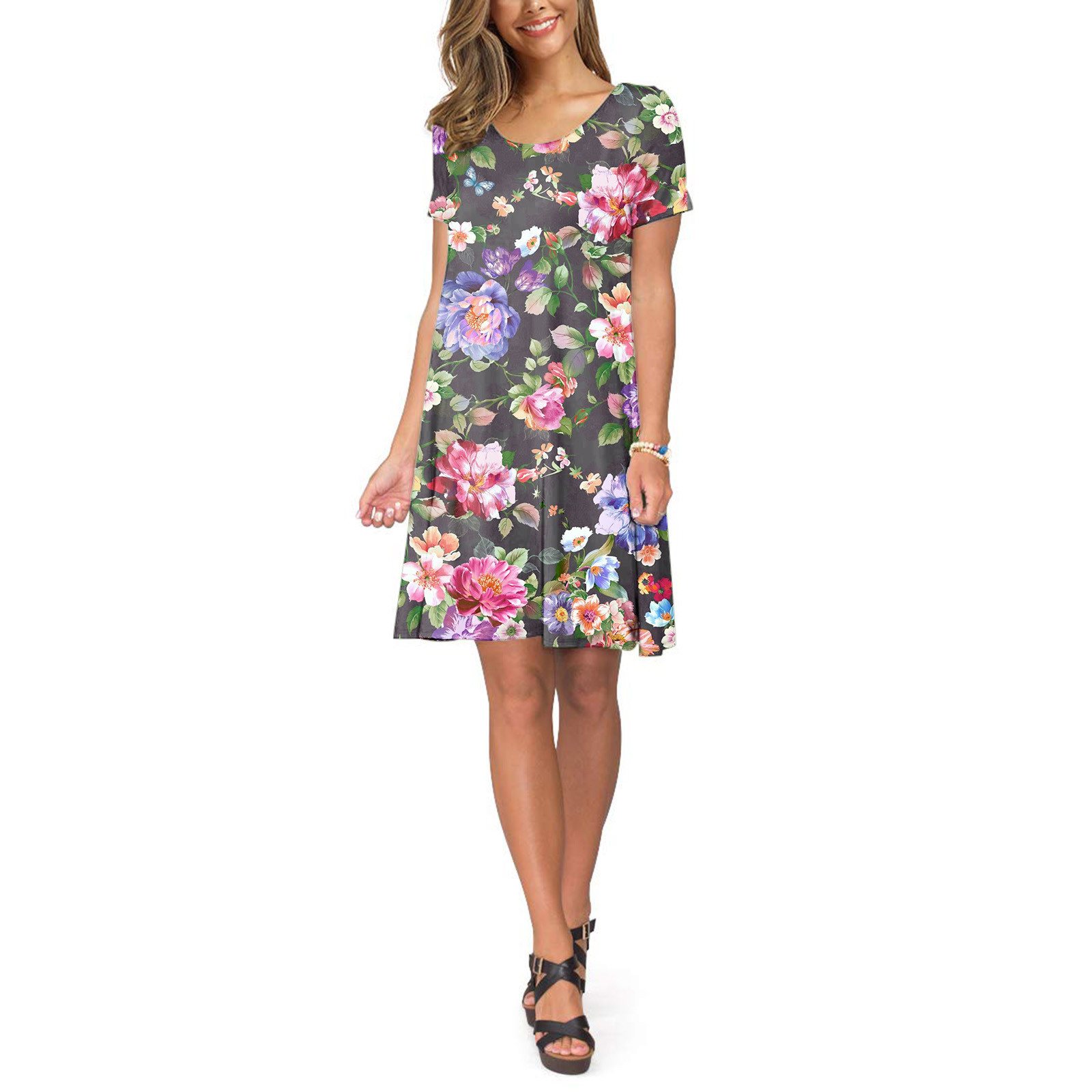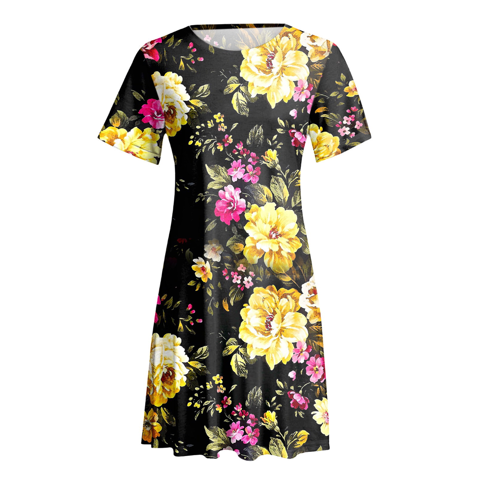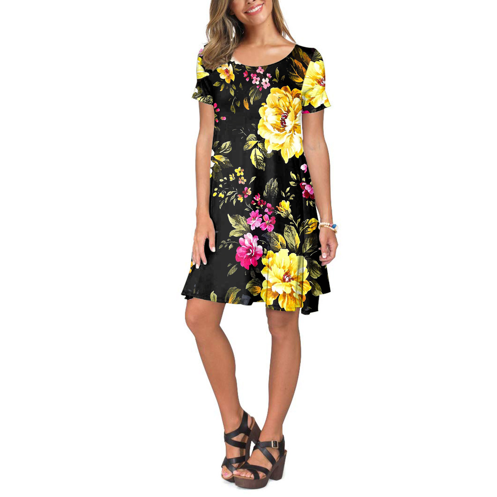 Женское летнее платье с коротким рукавом, цветочным принтом и карманами, повседневное свободное платье
