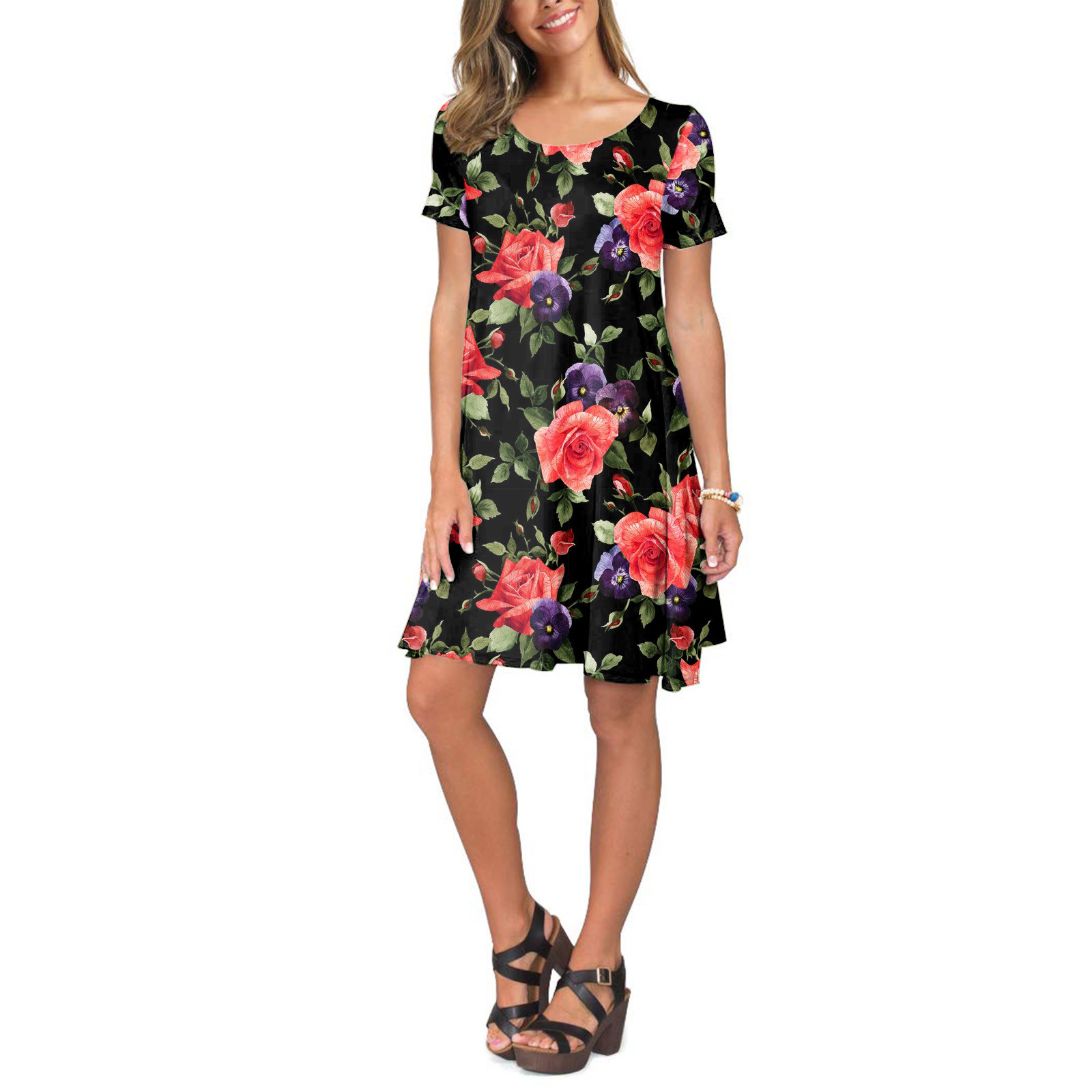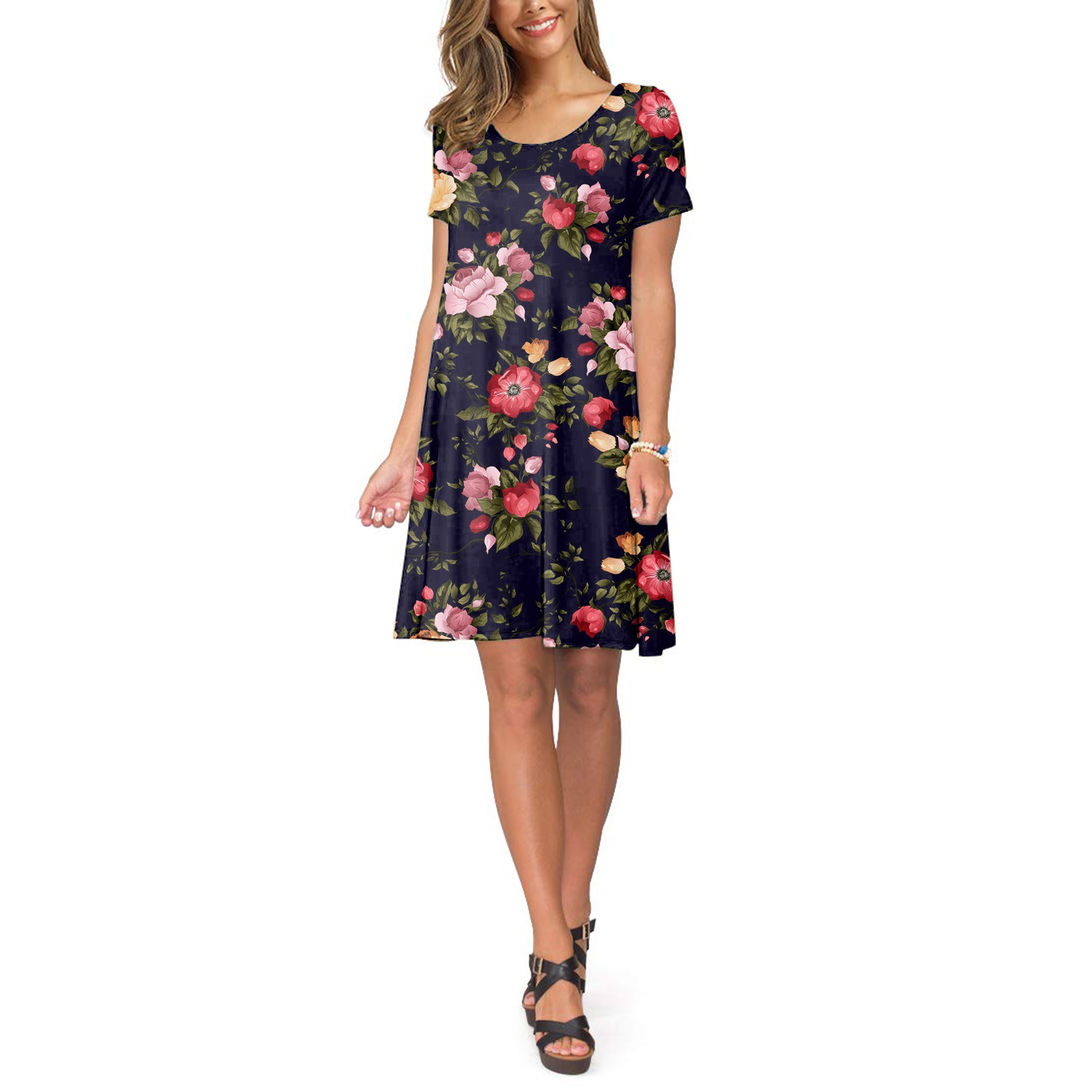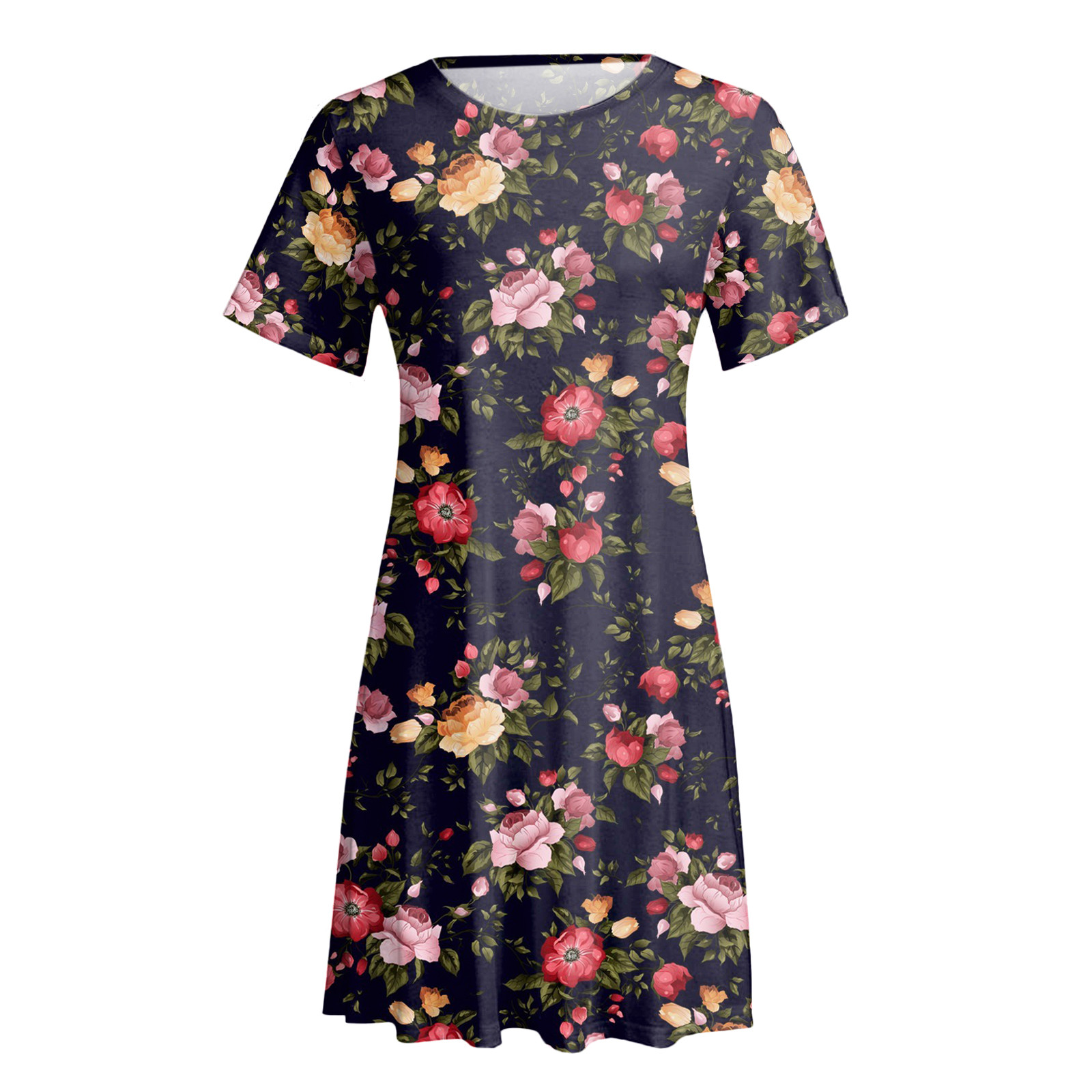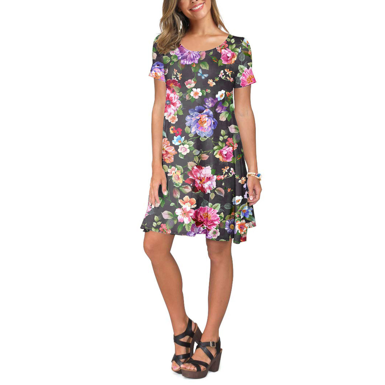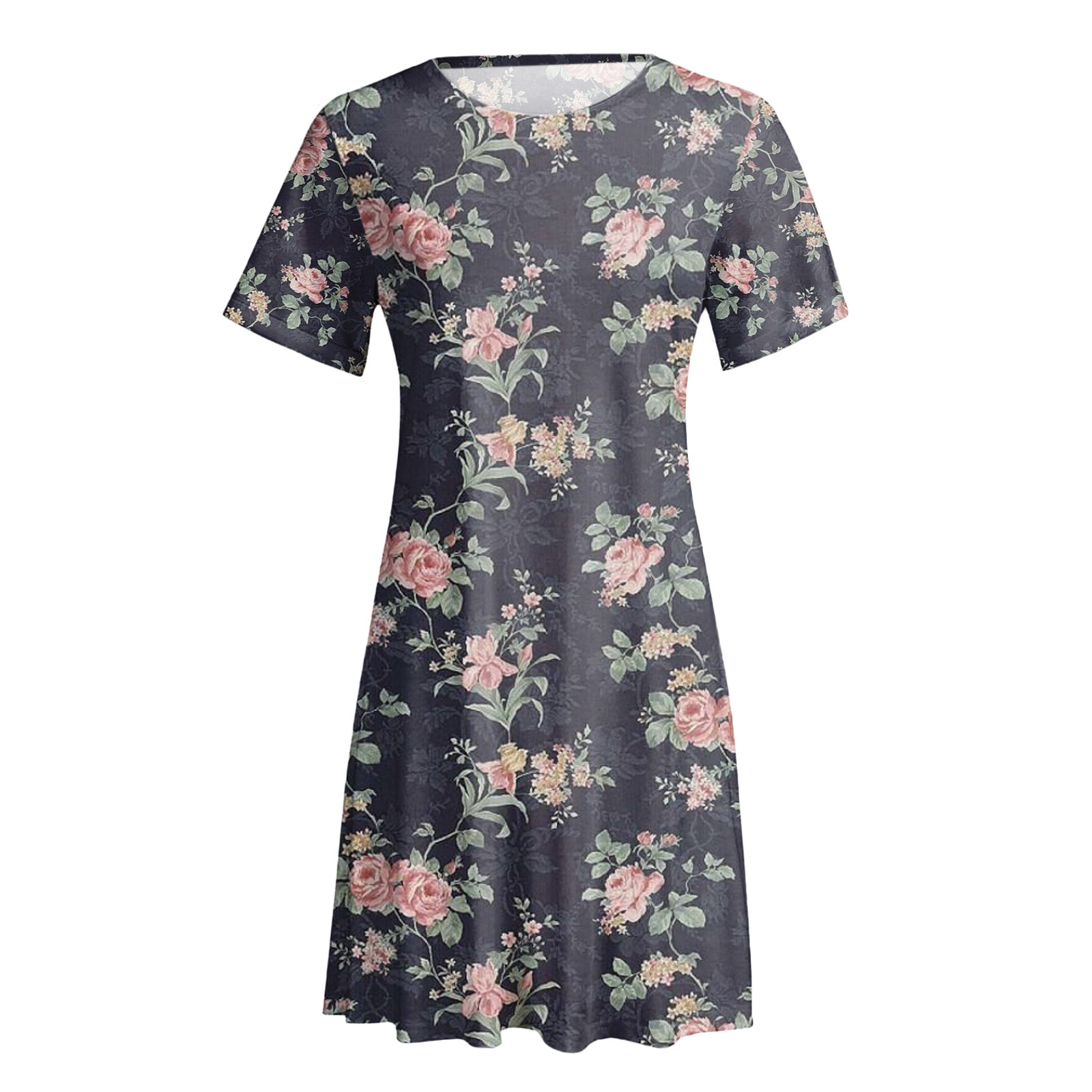 Женское летнее платье с коротким рукавом, цветочным принтом и карманами, повседневное свободное платье