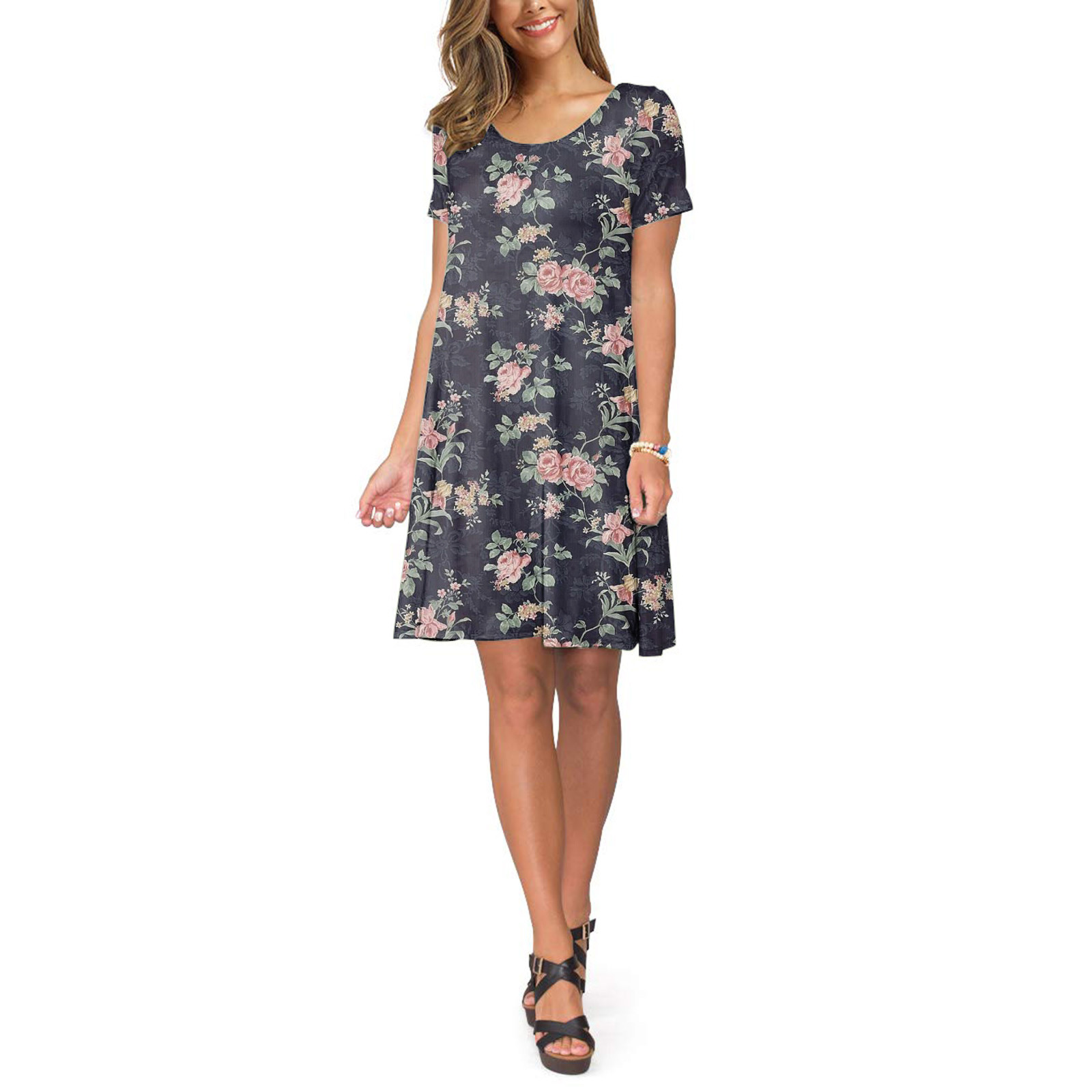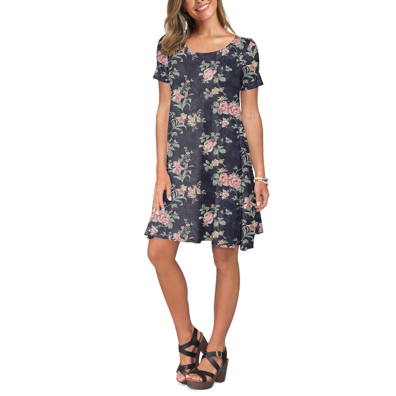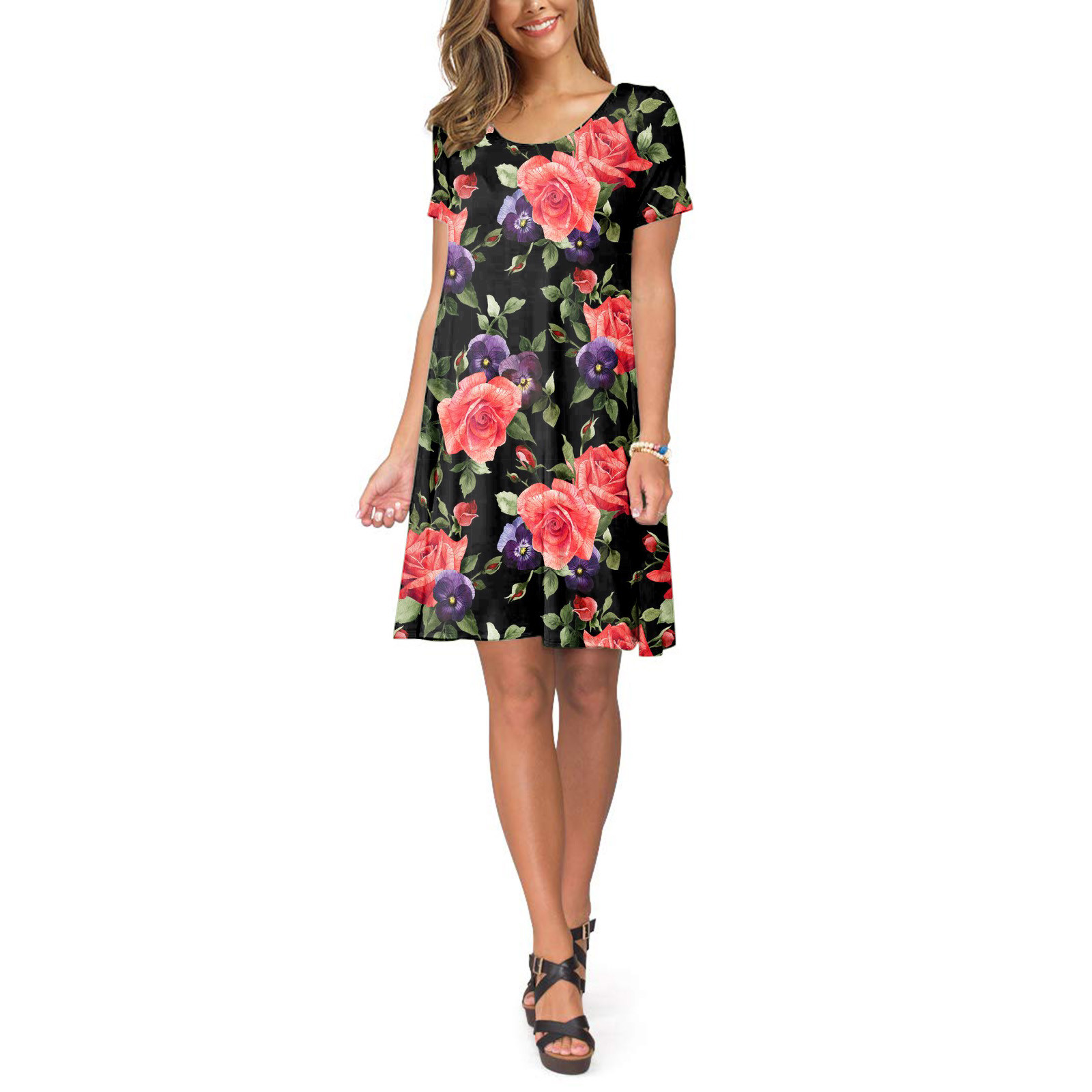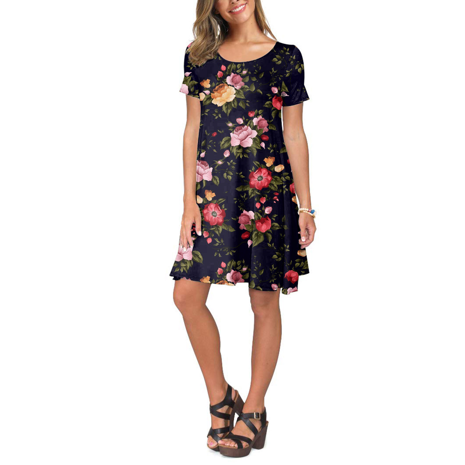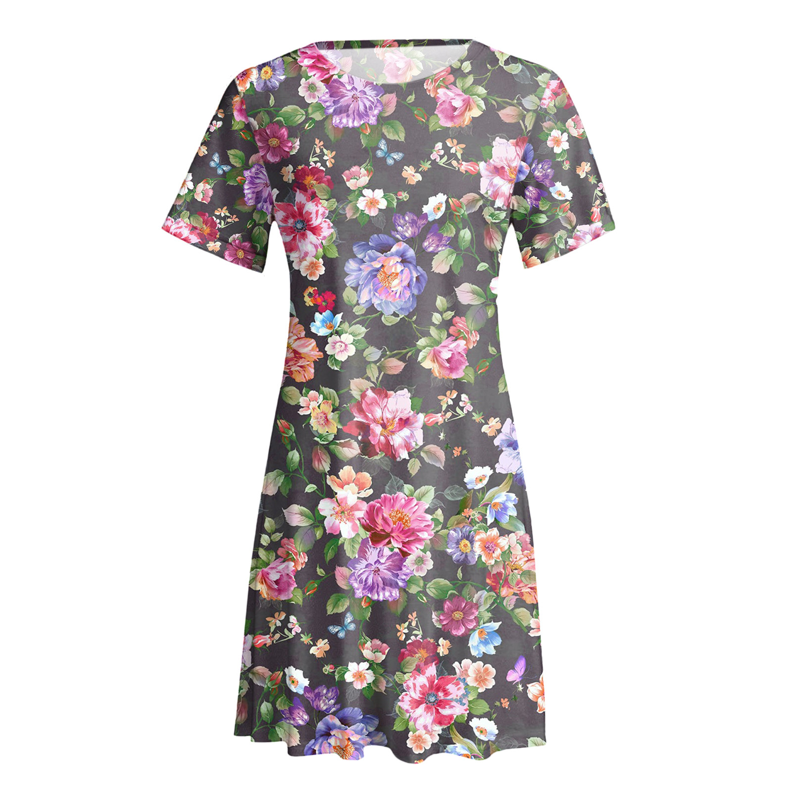 Женское летнее платье с коротким рукавом, цветочным принтом и карманами, повседневное свободное платье