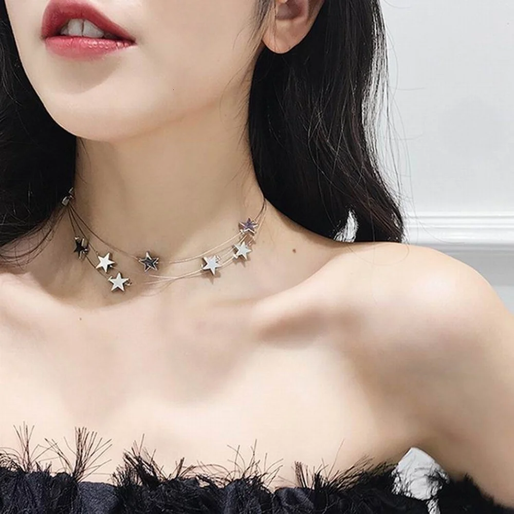 Ins модное многослойное колье-чокер со звездами и цепочкой до ключиц для женщин корейские ожерелья и кулоны Bijoux Collier Femme Jewelry