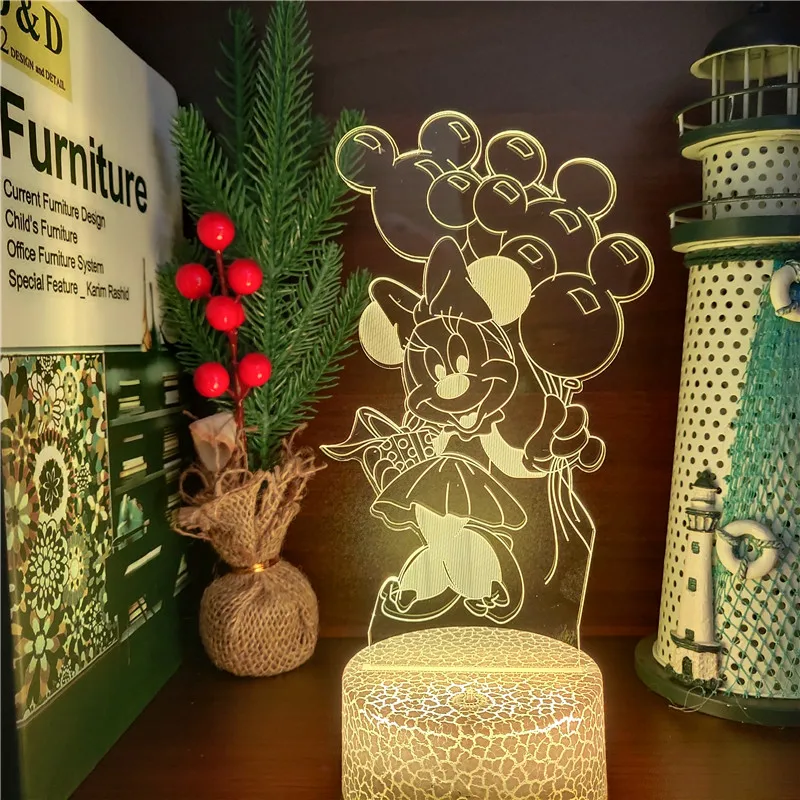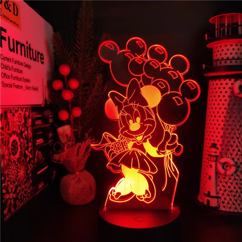 Дисней мультфильм 3D лампа Минни Микки Маус Акриловый СВЕТОДИОДНЫЙ Ночник светильник аниме Иллюзия Декор для спальни Lampara Kawaii детские подарки JEХарактеристики: Тип изделия: 3D светодиодный ночной Светильник Основной Материал: АБС-пластик Светильник Материал направляющей пластины: акрил Режим питания: USB/батарея (батарея не входит в комплект) Входное напряжение: DC5V Светильник источник света: светодиодный Светильник (7 цветов): красный, зеленый, синий, желтый, эмаль, фиолетовый, белый, регулируемый или яркий градиент Светильник: 3D стереоскопический рисунок (как показано на фотографии) Источник питания: питание от USB Напряжение продукта: 5 В Мощность продукта: 3 Вт Акриловый лист * 1 Основание ABS * 1 Usb-кабель для передачи данных * 1 Пульт дистанционного управления * 1 (опционально) Примечание: акриловая доска имеет защитную пленку с обеих сторон. Перед использованием снимите защитную пленку.