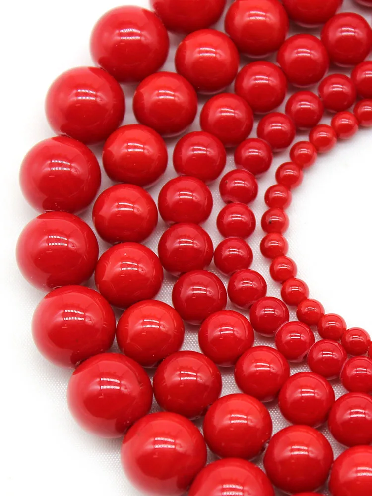 Имитация коралловых красных каменных бусин Свободные Круглые бусины 4 6 8 10 12 мм для самостоятельного изготовления ювелирных изделий Аксессуары Браслет 15''Strands