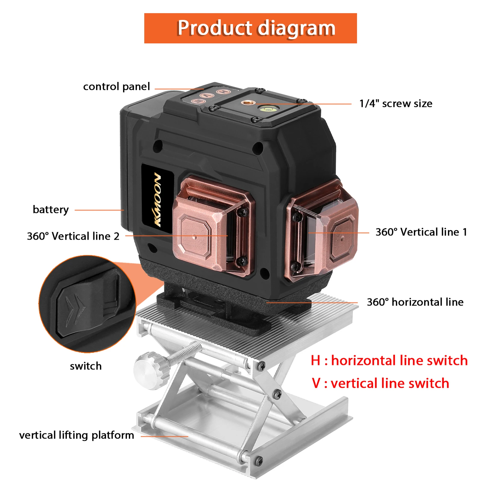 Оснащен функцией самостоятельной калибровки, ≤ 4 ° автоматическое выравнивание, но если угол превышает 4 °, лазерный светильник будет мигать и издавать звуковой сигнал, чтобы напомнить вам об их сбросе на ровной поверхности.