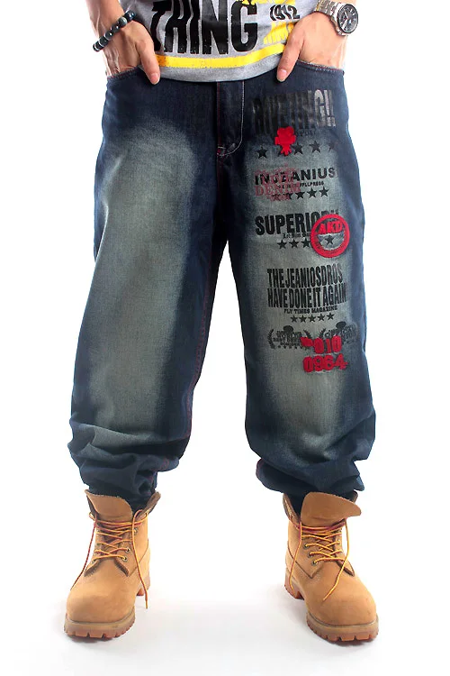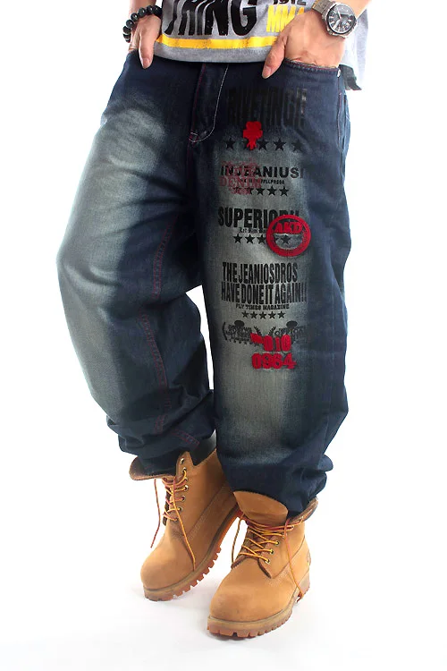 Уличные свободные джинсы в европейском и американском стиле Потертая джинсовая ткань; Вышитая нашивка с принтом; Белый цвет; Хип-хоп; Уличный стиль для отдыха. Модель изображения рост 175 см, вес 65 кг, размер одежды 32 (привычки одевания только для справки) Модель No.022Blue Модель № 239