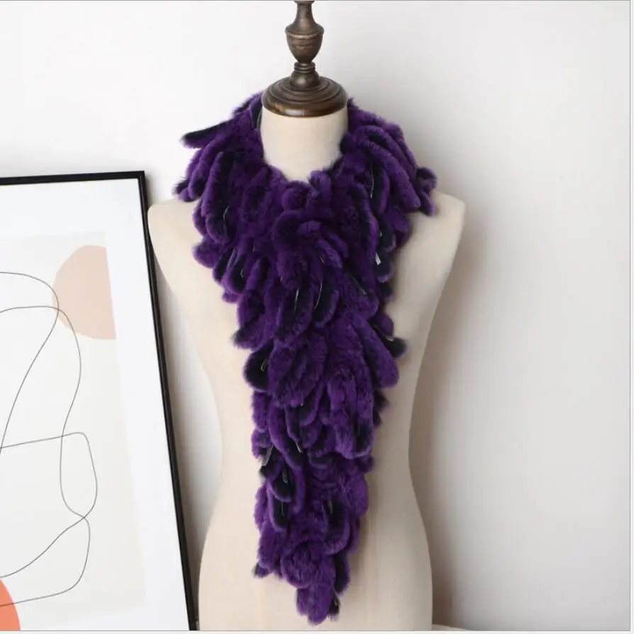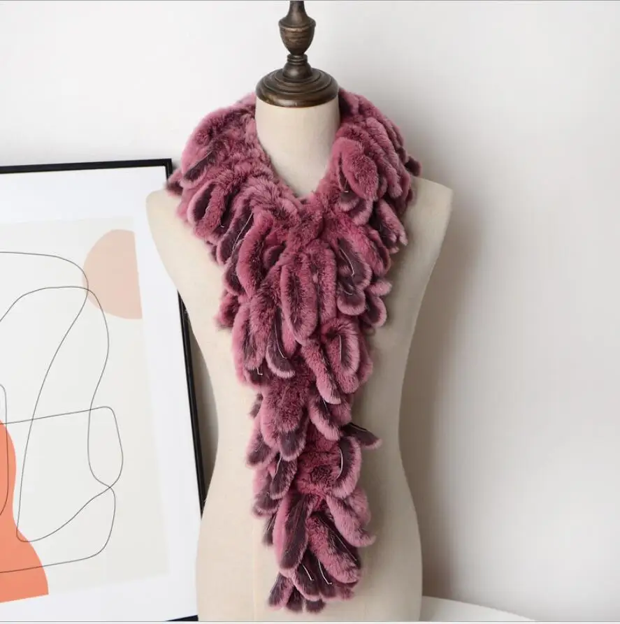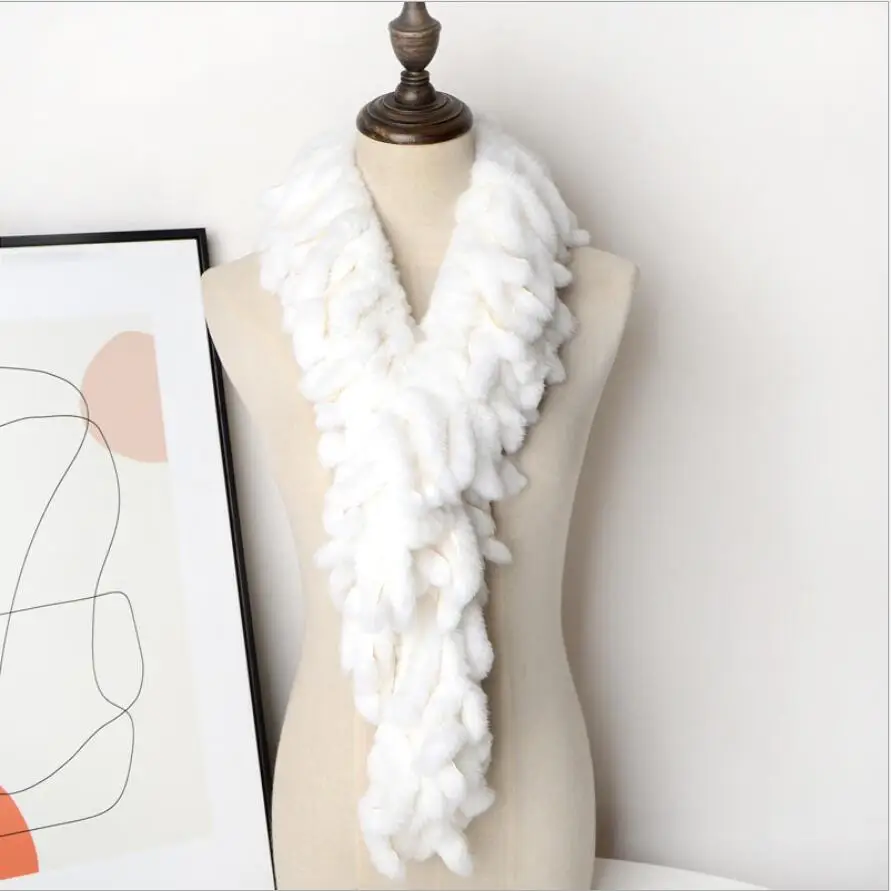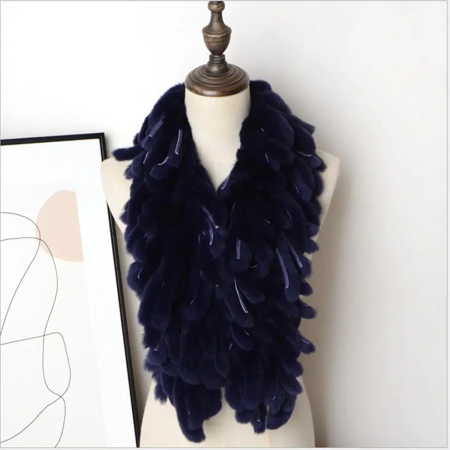 Women's Winter Real Rex Rabbit Fur Scarf Collar Neck Warmer Shawl Fluffy Furry Wraps