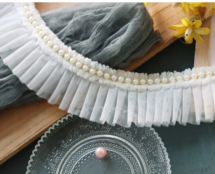 6 см Широкий двухслойный сетчатый плиссированный тканевый пояс с рюшами из бисера бахрома кружевной край отделка платье шторы диван воротник швейный Декор