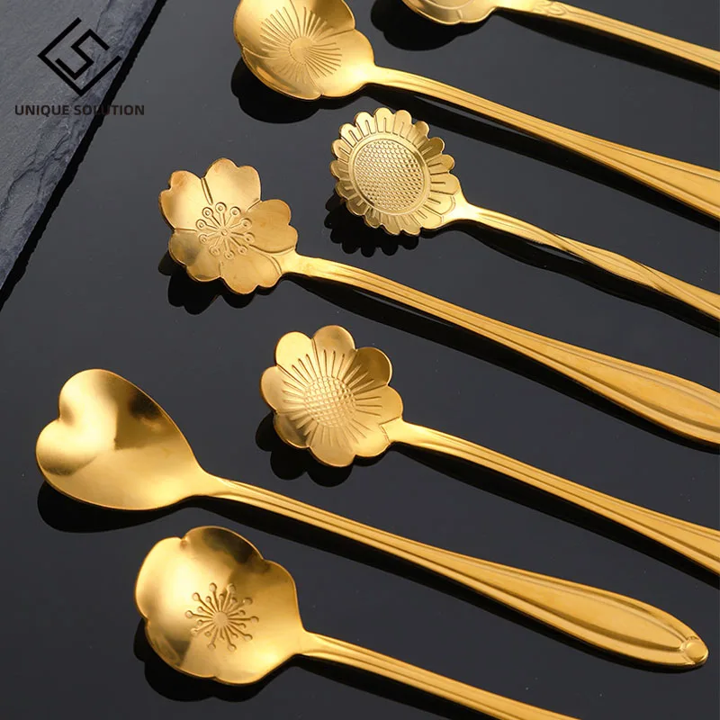 8 x кофейных ложек из нержавеющей стали в случайном цветочном узоре (Пожалуйста, оставьте нам сообщение, если вам нужны конкретные цветочные узоры.)
