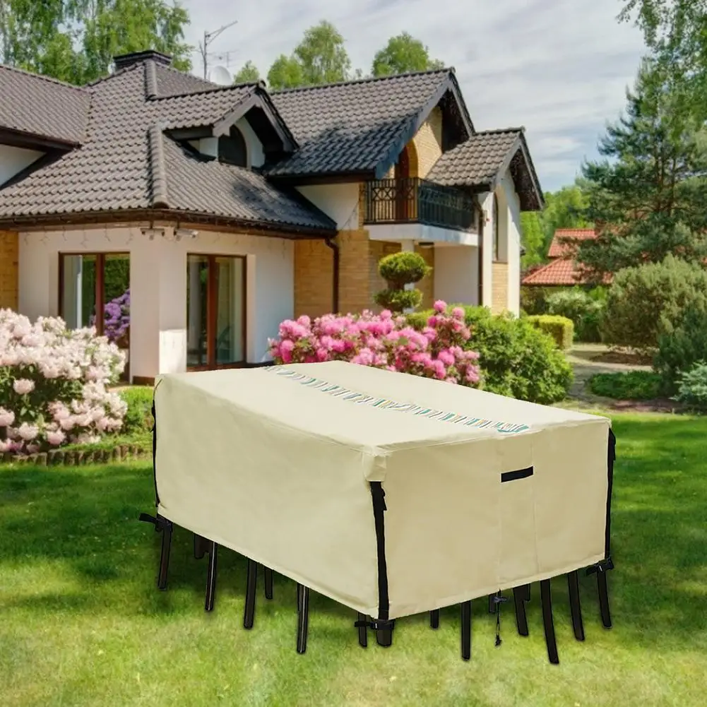 1. Универсальный Размер: Этот чехол для террасы подходит для прямоугольного/квадратного стола и стандартных стульев 6-8, самый длинный-около 183*112*58,4 см. Пожалуйста, измерьте свою мебель перед покупкой. Более подходящая Крышка на 1-2 дюйма будет немного больше.