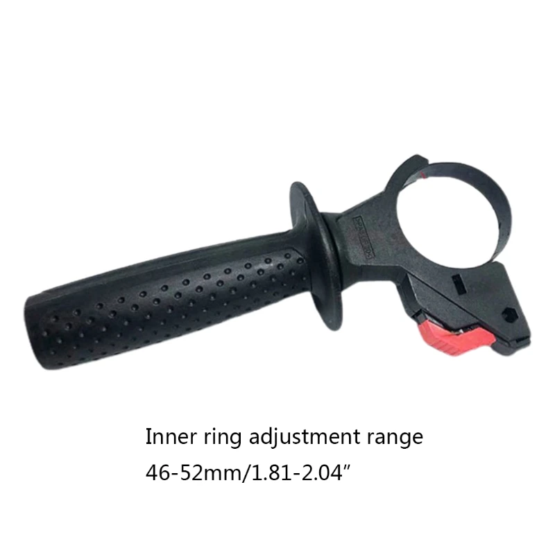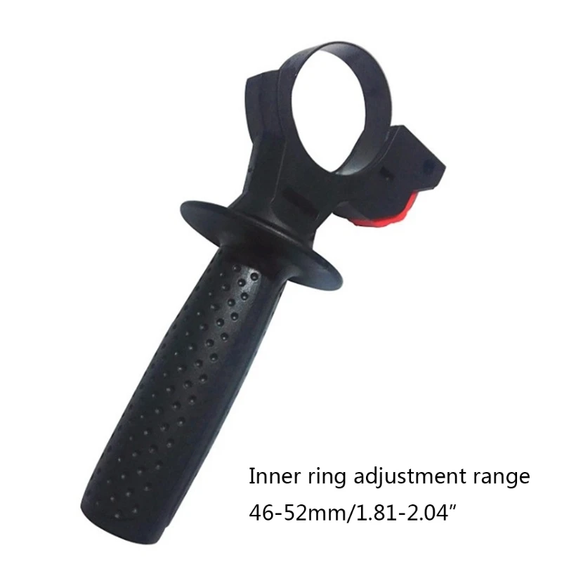 Диапазон регулировки внутреннего кольца: 46- 52 мм/1,81-2,04 дюйма. Изготовлен из высококачественного пластика, прочный и износостойкий. Чистая Вес: 140g/0,31 фунтов. Ручка имеет вогнутый круглый дизайн, который удобен для захвата и не скользит. Подходит для передней ручки электрического молотка, передней ручки ударного сверла, аксессуаров электрического молотка, ручки электрического инструмента.