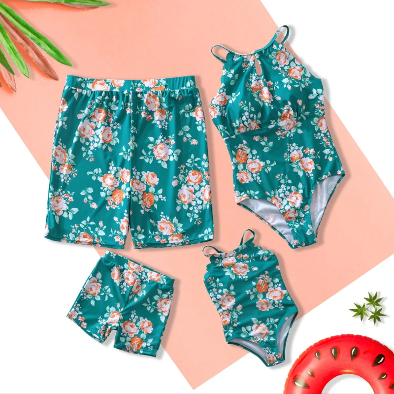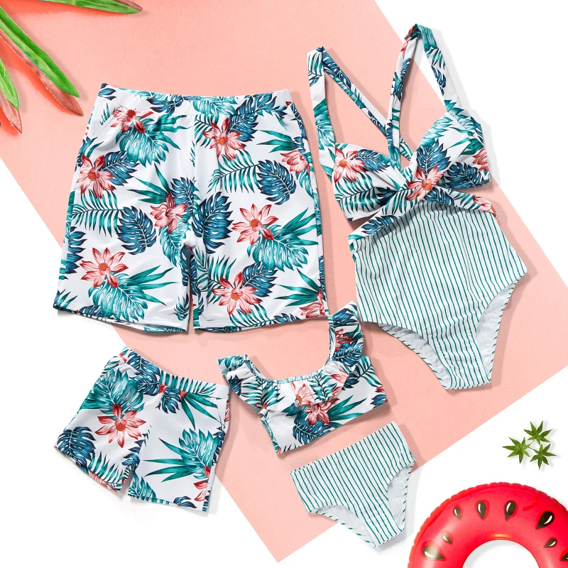 Название продукта: купальный костюм с цветочным принтом для мамы и дочки; Плавки для папы и сына