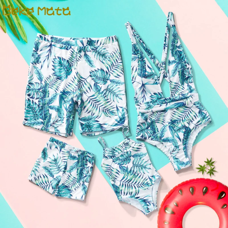 Одинаковая одежда для купания для всей семьи коллекция 2022 года, летний цельный купальный костюм для мамы и дочки комплект бикини, купальные штаны для папы и сына одинаковые Семейные комплекты