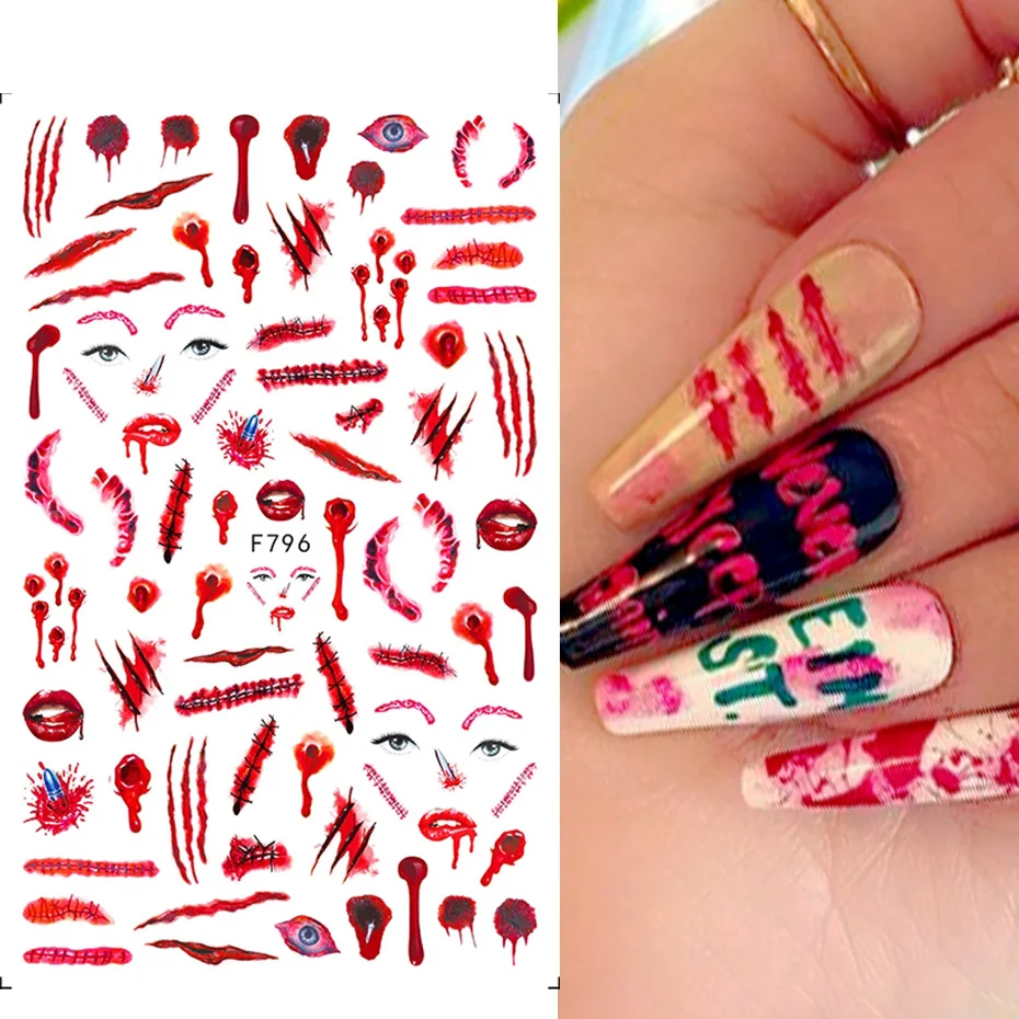 1 шт., наклейки Джокер покер для ногтей, мультипликационные самоклеящиеся слайдеры, змейка, паук, кровавая рана, Парша, дизайн, маникюр, Декор, SAF794
