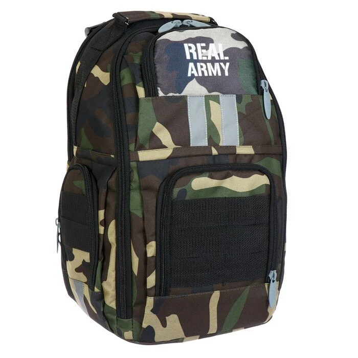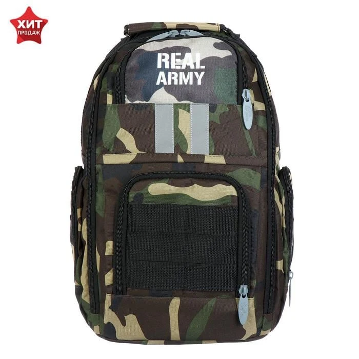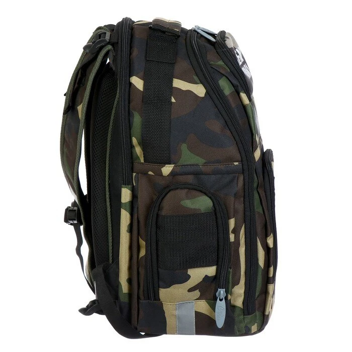 Имеется:вместительный основной отдел с внутренним карманом, малый узкий отдел, на передней стенке два объёмных кармана на молнии, два боковых кармана на молнии, жесткая спинка с мягкими вкладышами, образующими каналами для циркуляции воздуха, плотные заплечные S-образные лямки с нагрудной стяжкой, регулируются ремнями, фурнитура пластиковая, верхняя ручка оснащена текстильным подручником, дополнительные регуляторы высоты лямок и пояс и помогают добиться более комфортной посадки рюкзака на спине и правильного распределения нагрузки на позвоночник.